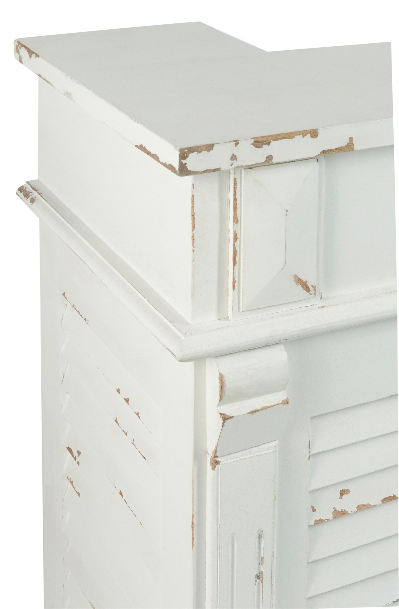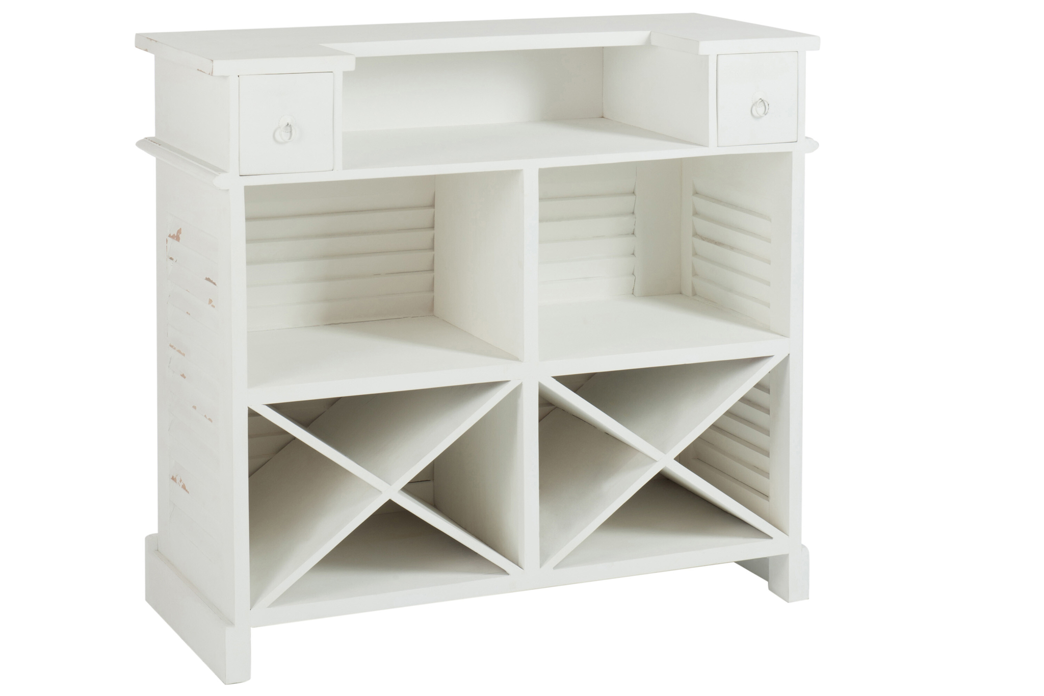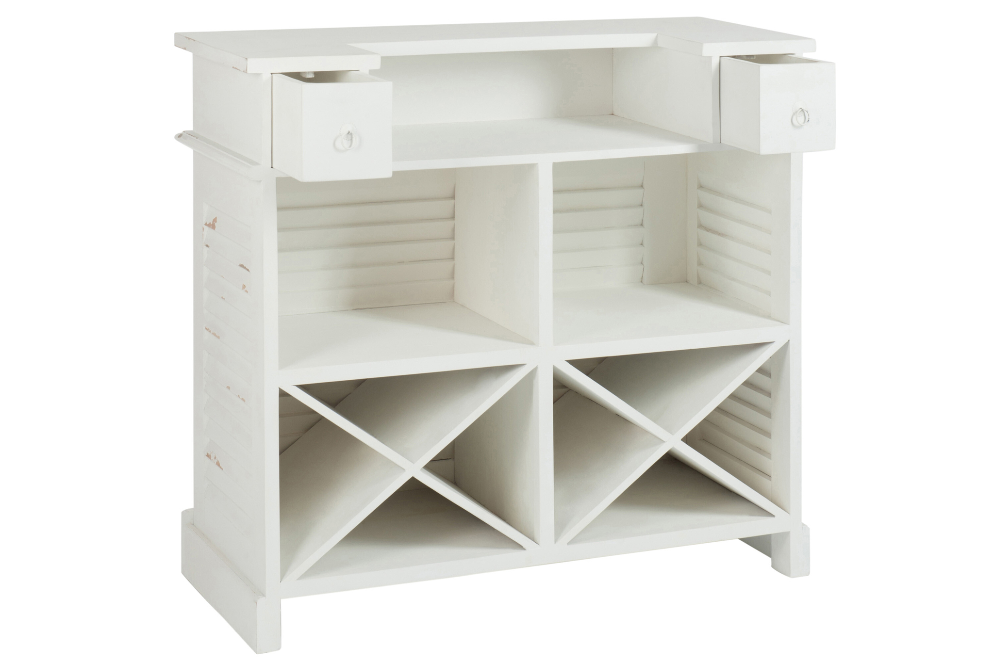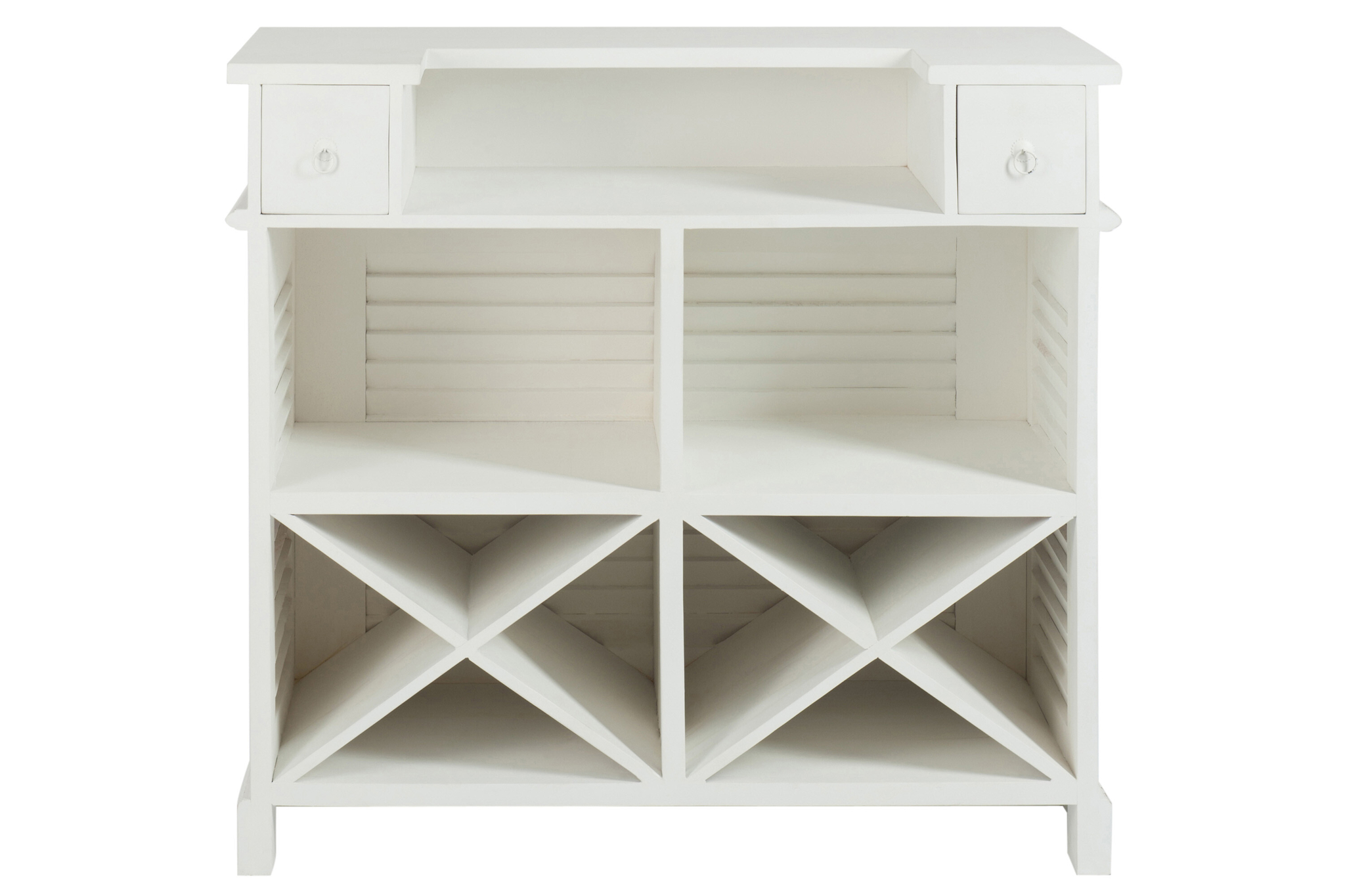Elegantes Bar-Sideboard aus massivem Eukalyptusholz in Weiß mit zwei Schubladen, zeitloses Design für stilvolle Interieurs.