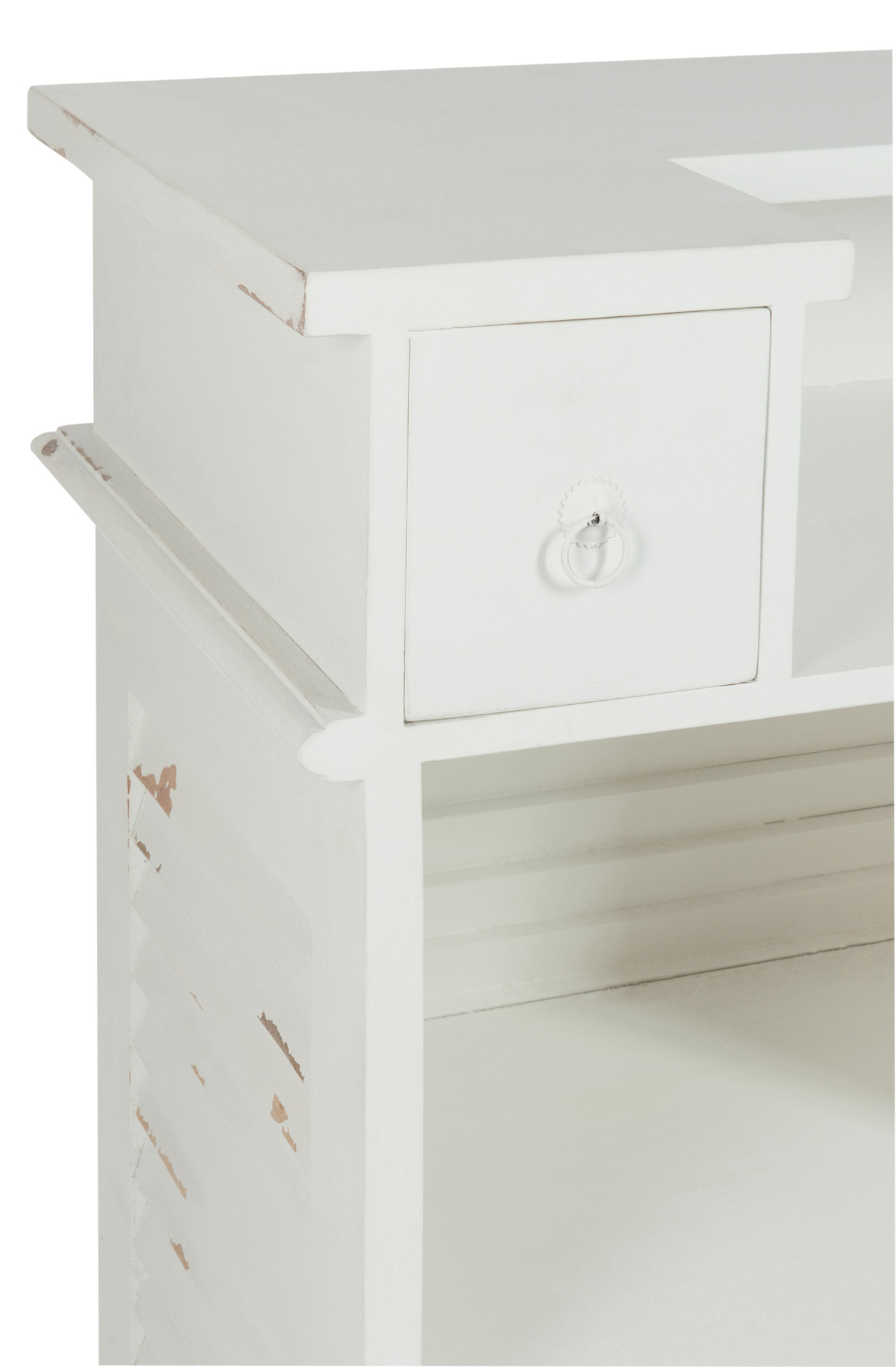 Bar-Sideboard aus Eukalyptusholz in Weiß mit zwei Schubladen