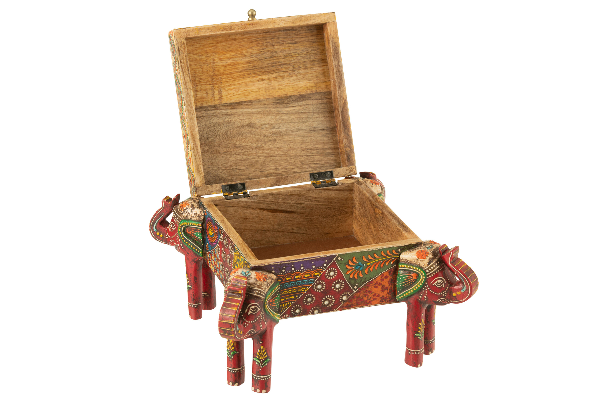 Box „Elephant Feet“ aus 80 % Mango‑Massivholz und 20 % MDF in attraktivem Farbmix. Die hochwertige Verarbeitung und natürliche Maserung verleihen der Box Eleganz und Robustheit. Ideal zur Aufbewahrung von Accessoires, Schmuck oder kleinen Gegenständen und gleichzeitig ein dekoratives Element für anspruchsvolle Wohnräume. Mit kompakten Maßen von 23 × 15 × 23 cm vielseitig einsetzbar.
