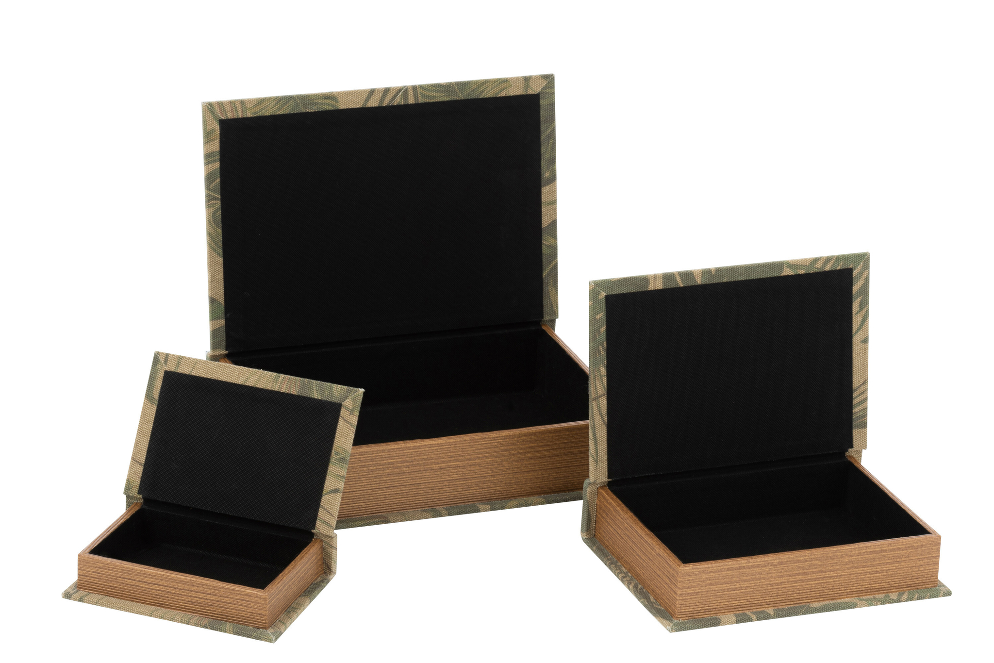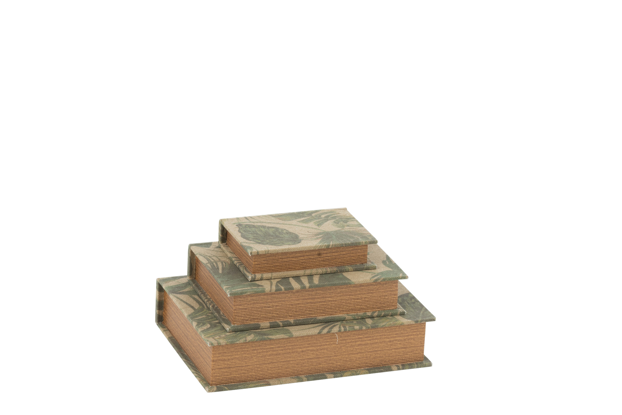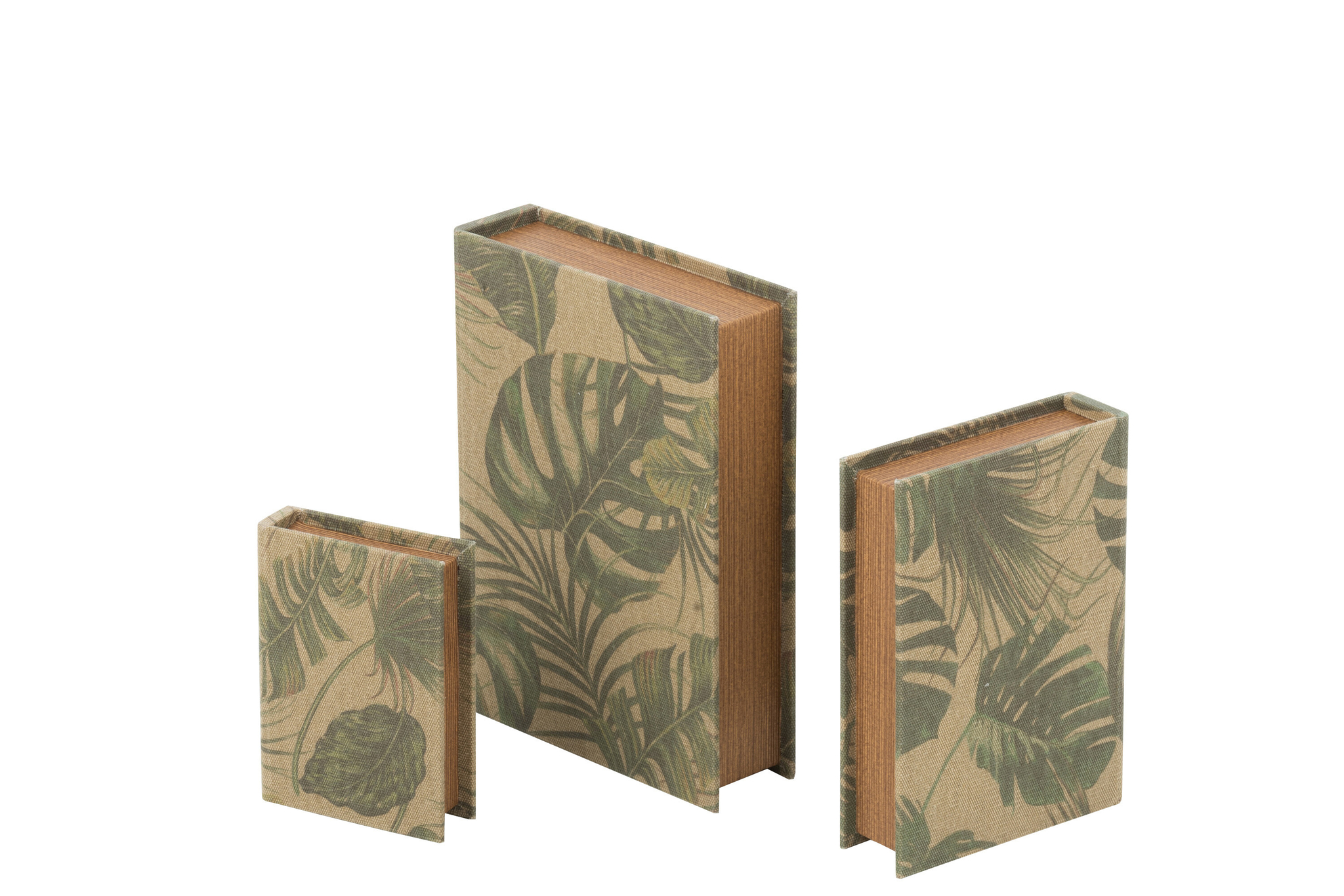 3er Set Buchboxen mit Blattmotiv aus 90 % MDF und 10 % Flachs dekorativ und praktisch für stilvolle Aufbewahrung.