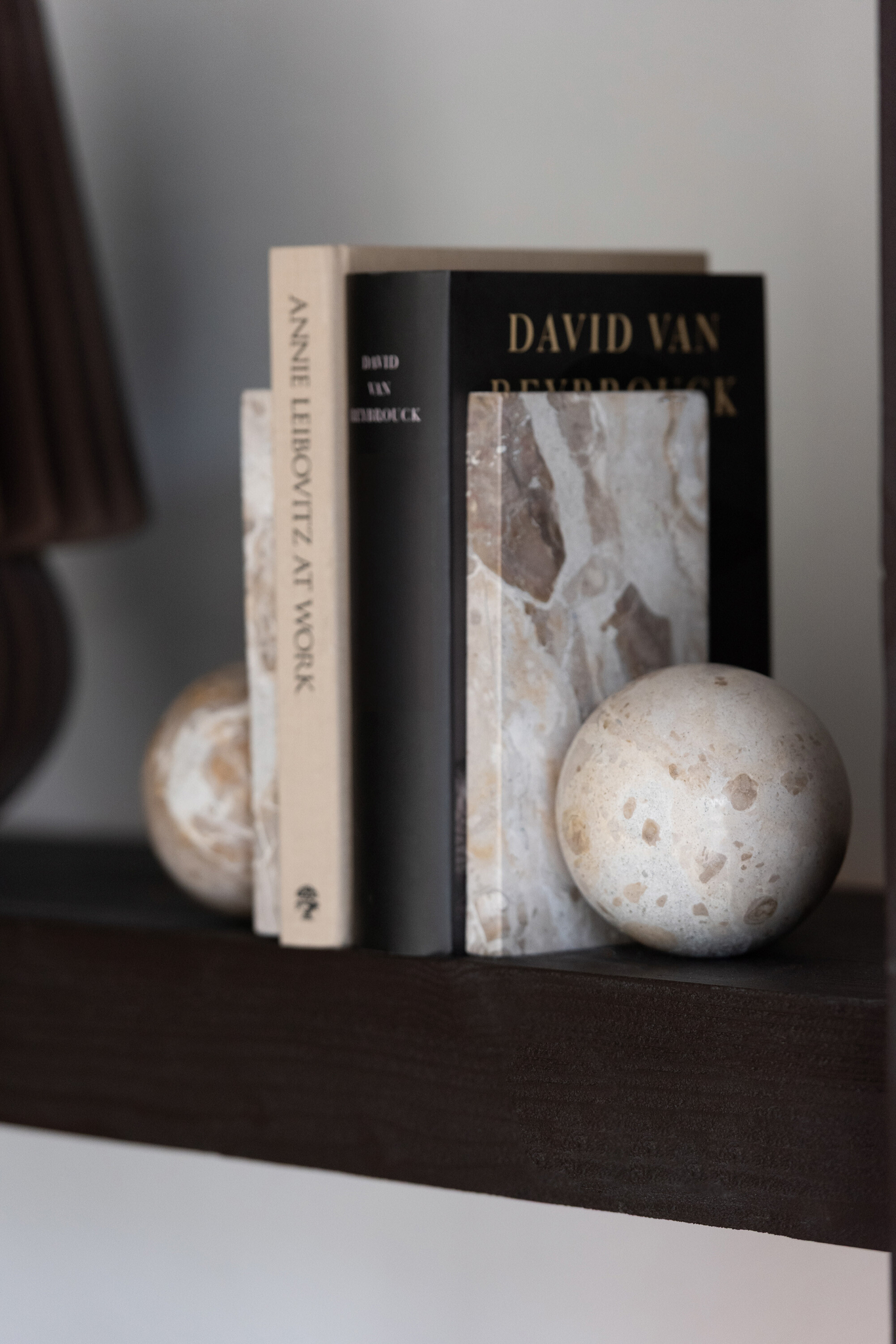 Beigefarbene Marmor-Buchstütze, stabil, elegant und ideal für stilvolle Bücherpräsentation.