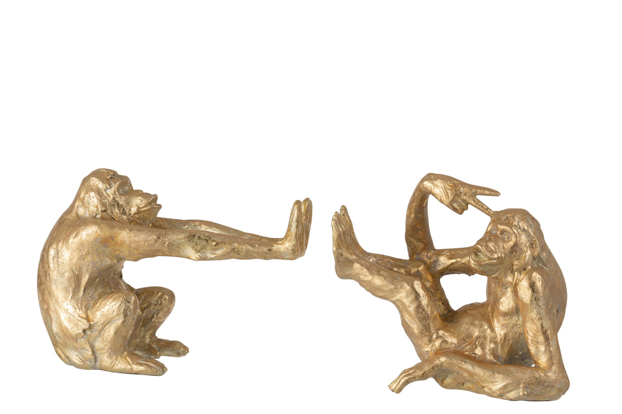 Zwei goldfarbene Buchstützen „Ape“ aus Polyresin, elegant, stabil und ideal für stilvolle Bücherpräsentation.