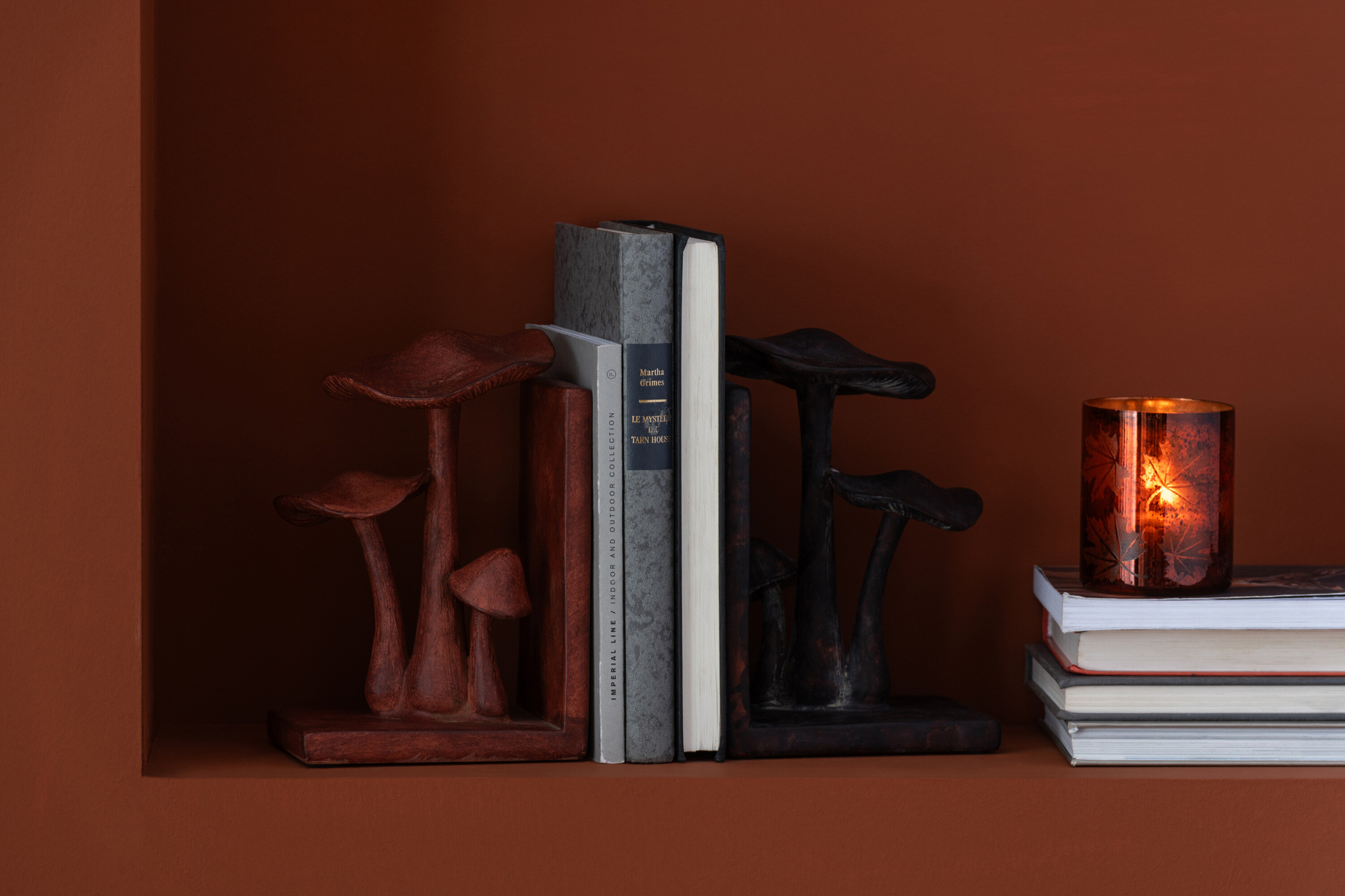 Buchstützen Set Pilz rostbraun/schwarz