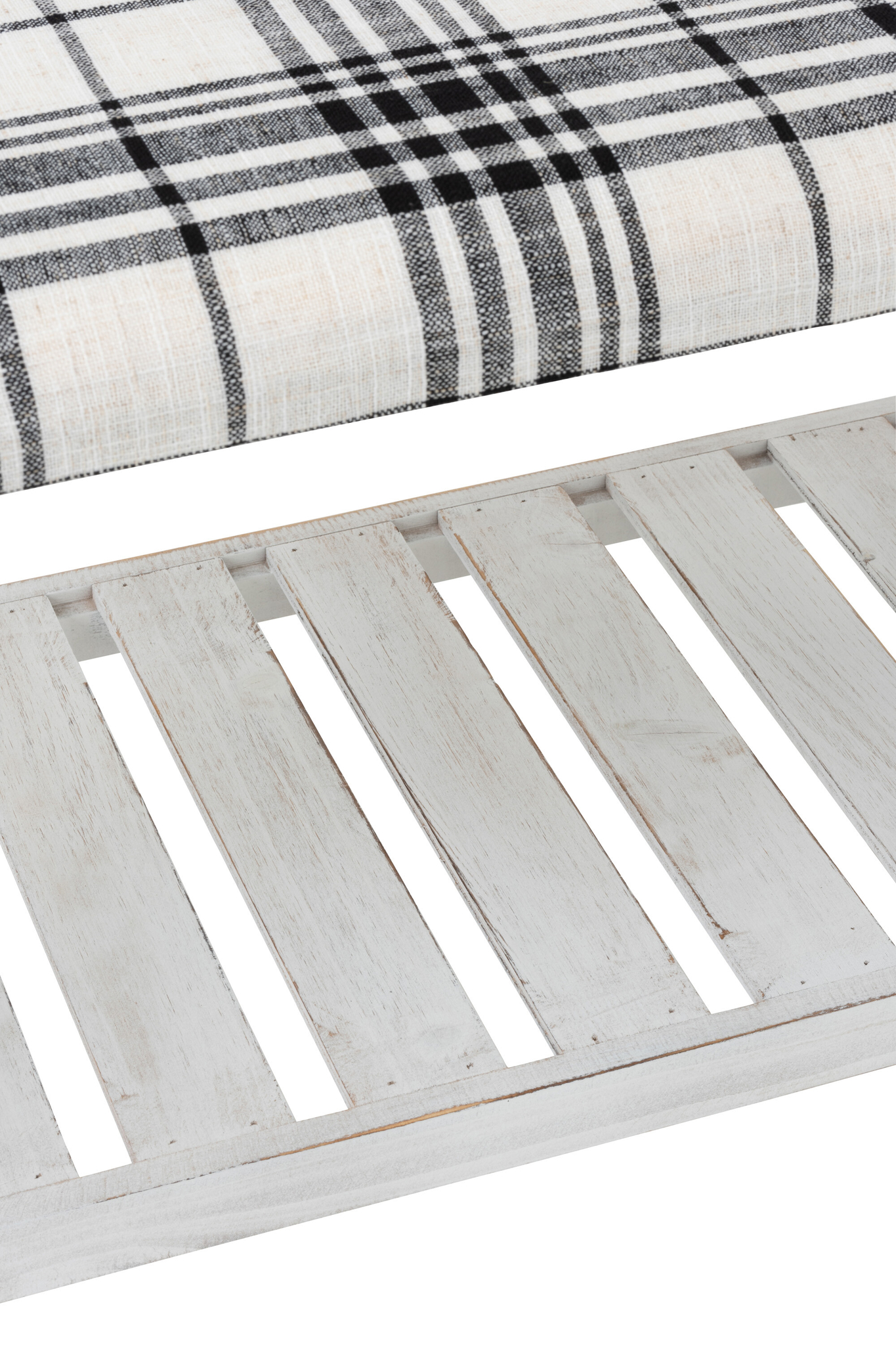 Diese stilvolle Bank vereint natürliche Materialien mit modernem Komfort. Das helle Kiefernholz bildet eine harmonische Basis, während der weiße Leinenbezug und die schwarze Polsterung für ein elegantes und ansprechendes Design sorgen. Die Kombination aus Holz, MDF, Leinen und Schaumstoff bietet eine stabile Konstruktion und gleichzeitig angenehmen Sitzkomfort. Dank der kompakten Maße fügt sich die Bank flexibel in unterschiedliche Innenräume ein und eignet sich als Sitzgelegenheit im Flur, Wohnbereich oder Schlafzimmer. Das funktionale und zugleich ästhetische Design macht sie zu einem vielseitigen Möbelstück für anspruchsvolle Wohnumgebungen.