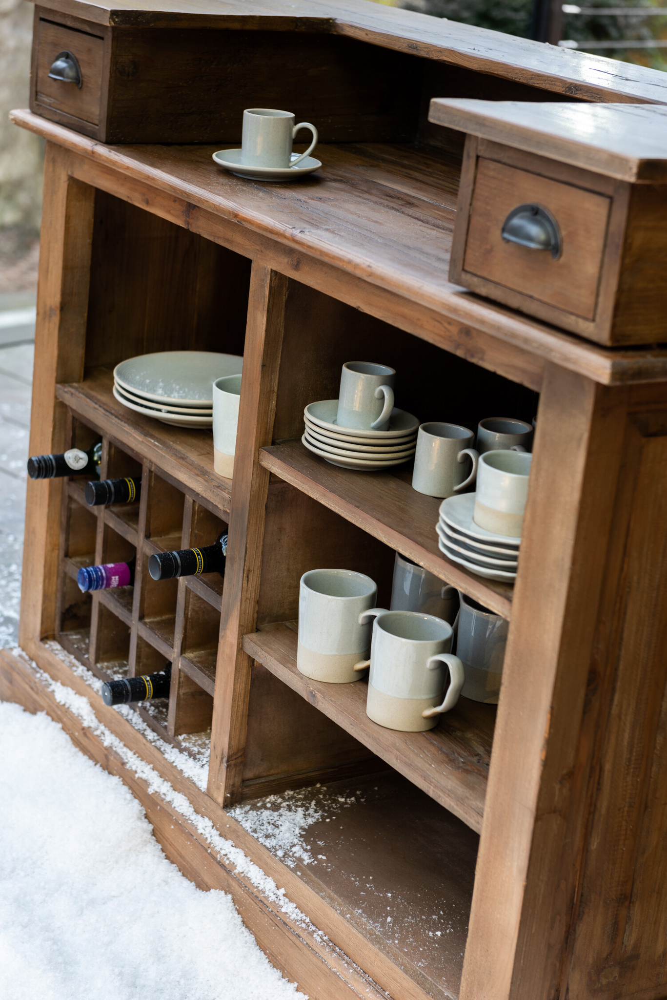 Elegante Bar mit zwei Schubladen in brauner Holzoptik für stilvolle Wohn und Gastronomiebereiche