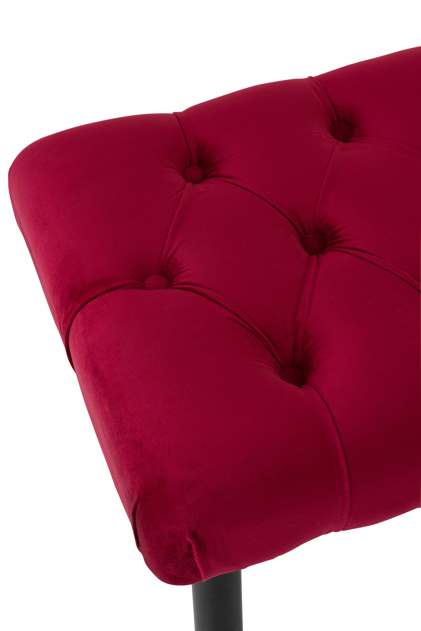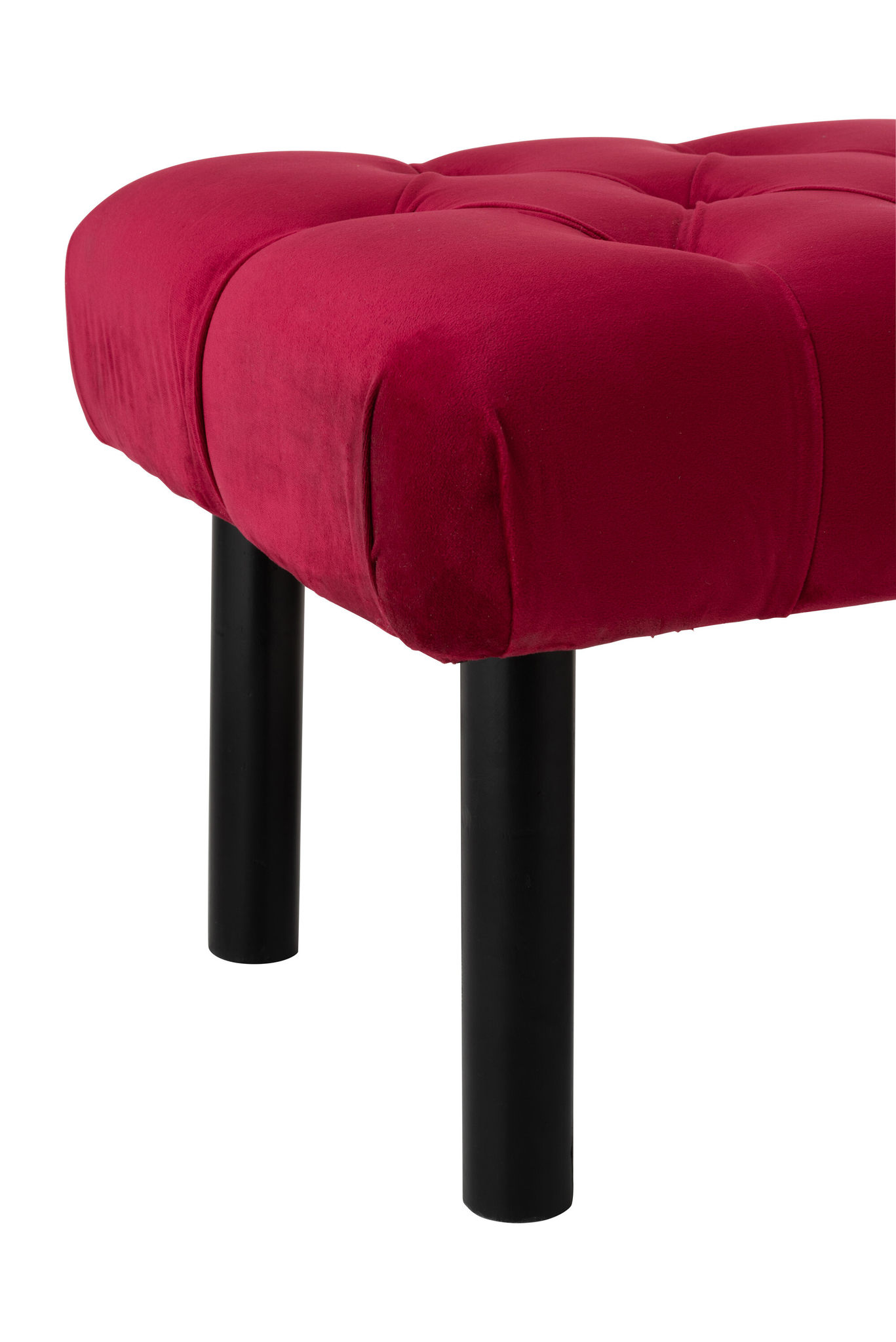 Langer Fußhocker mit weichem Samtbezug in Burgund und Schwarz, der Komfort und elegantes Design vereint.