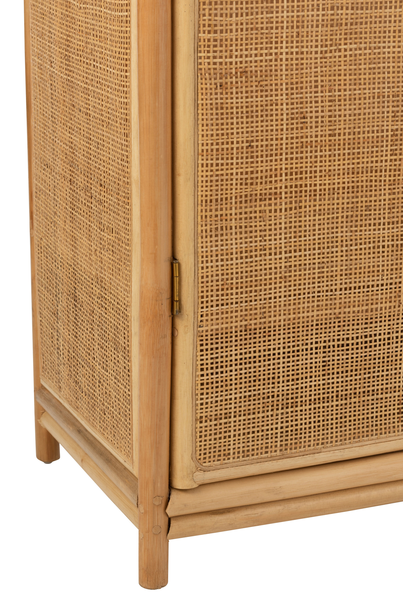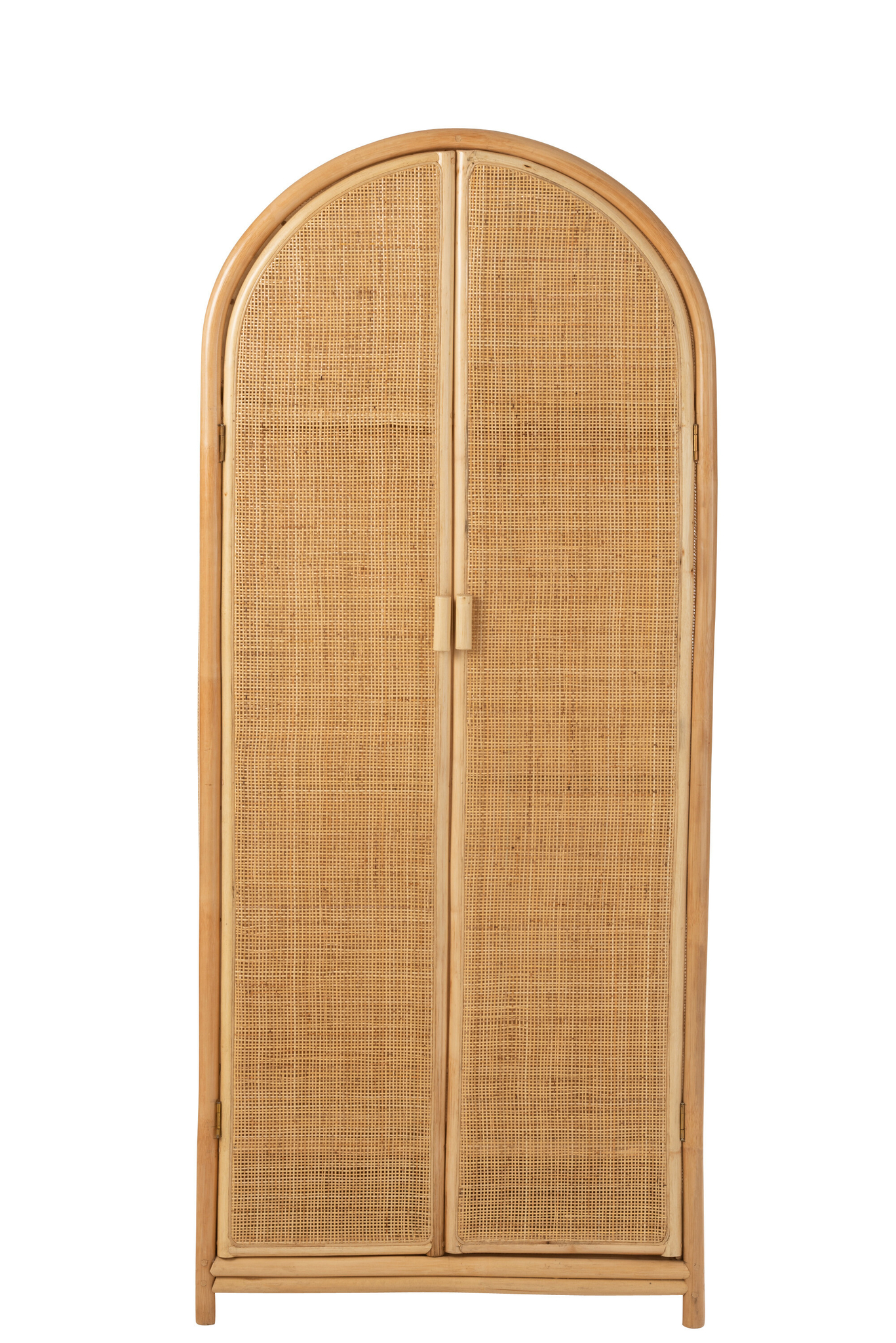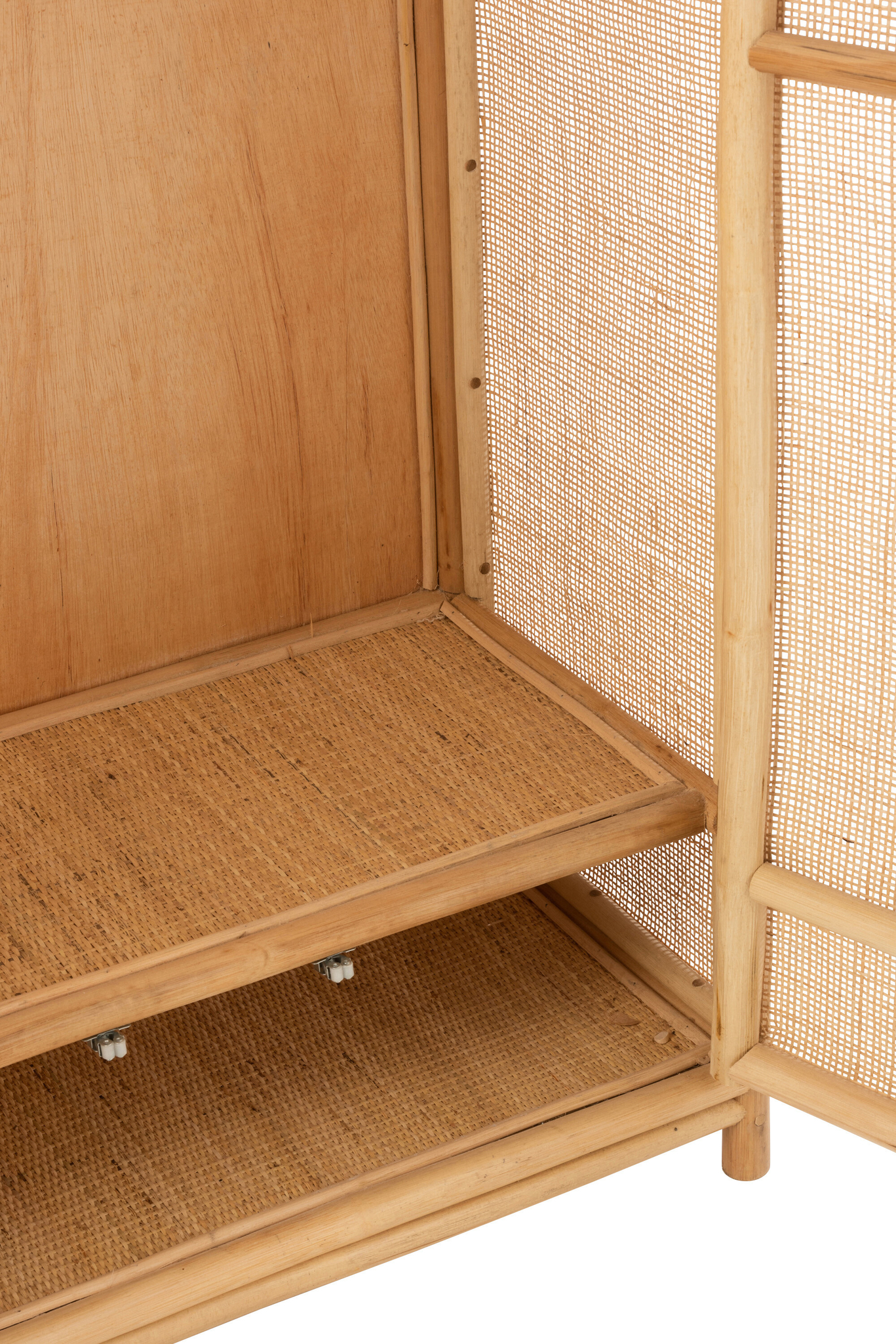 Moderner Ellen-Kleiderschrank aus Rattan in Natur mit zwei Türen.