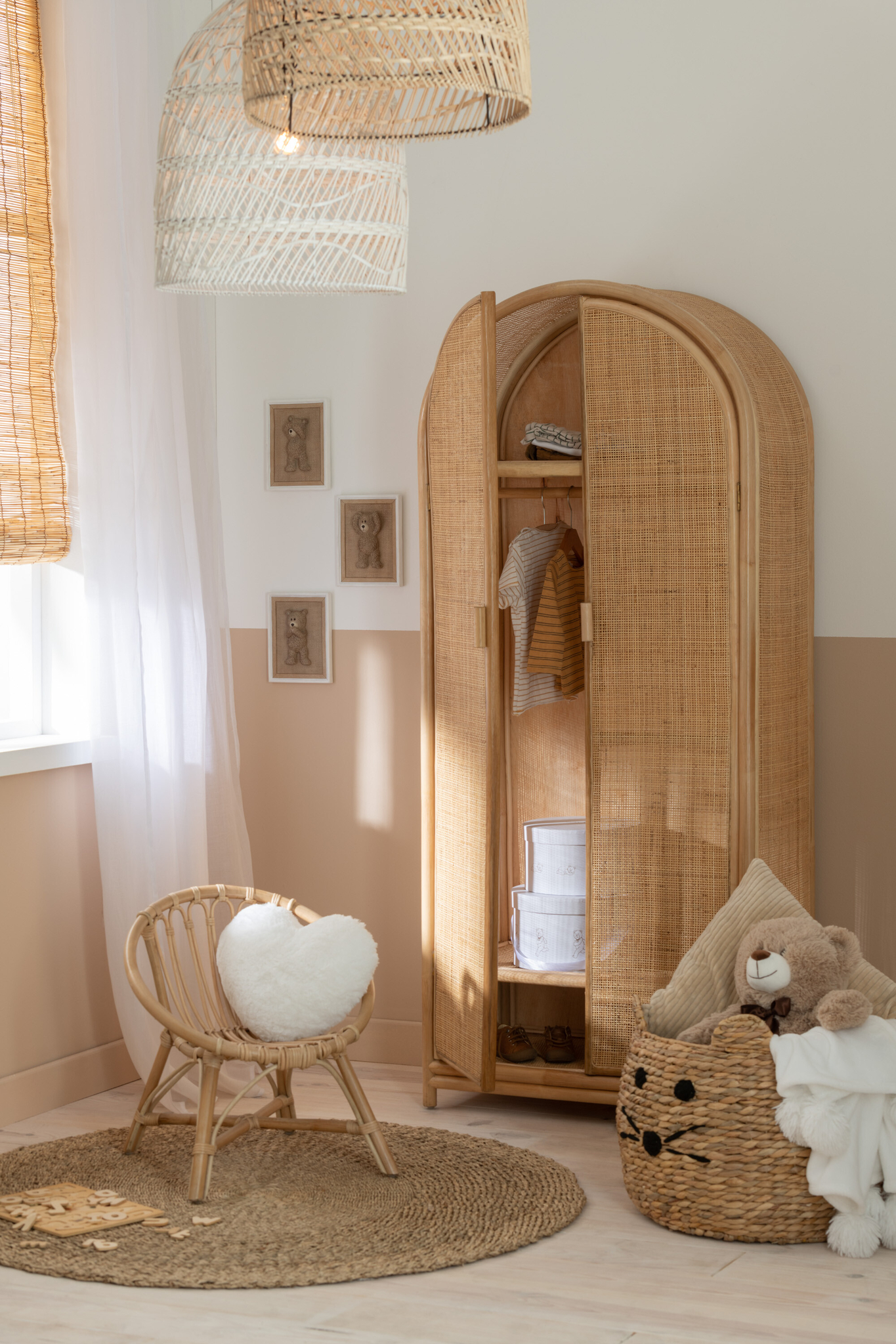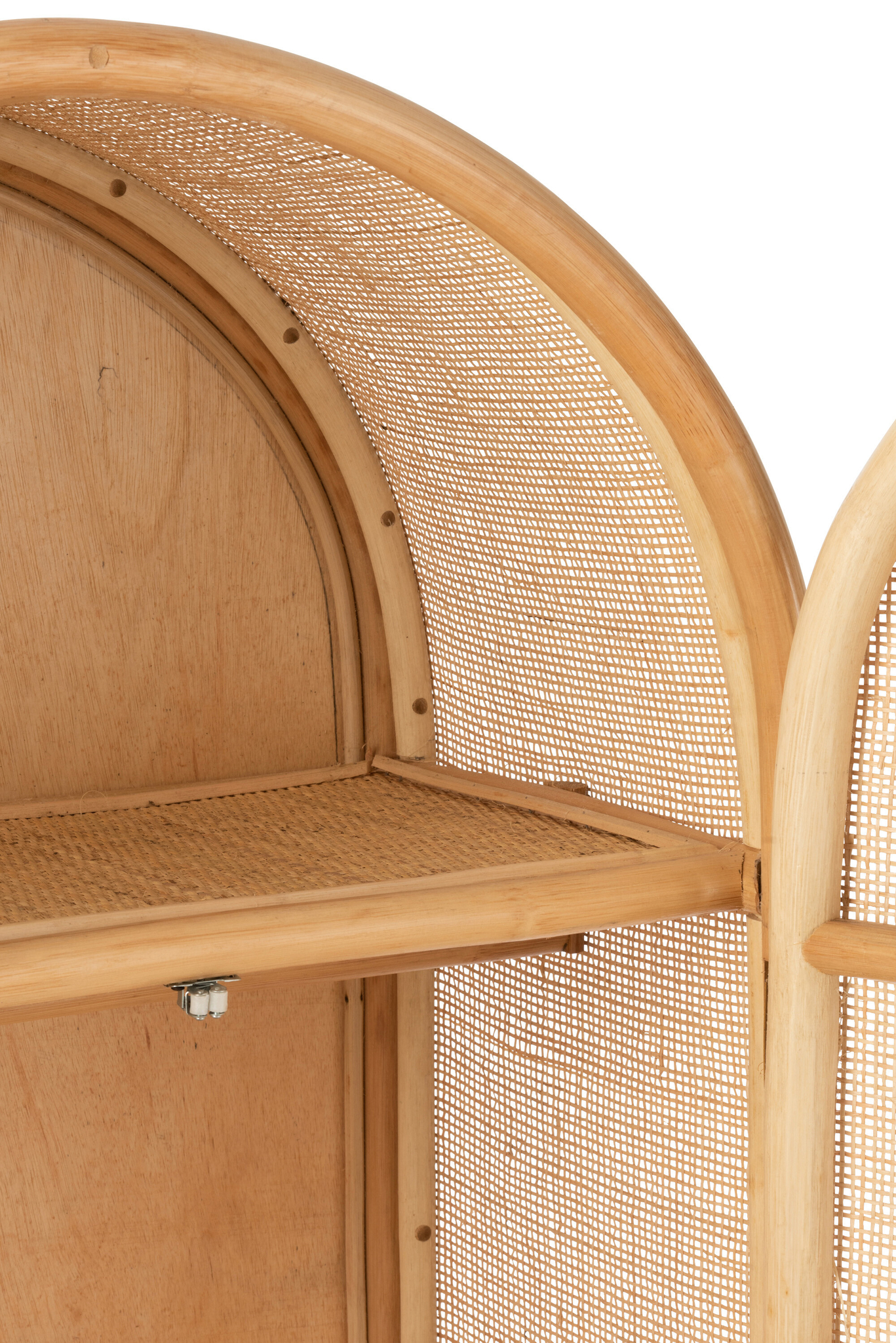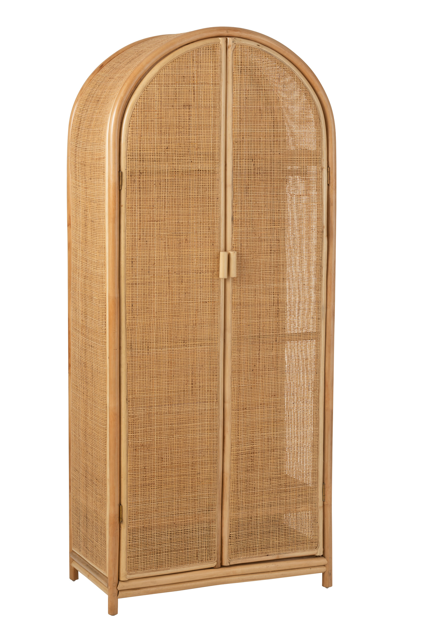 Moderner Ellen-Kleiderschrank aus Rattan in Natur mit zwei Türen.