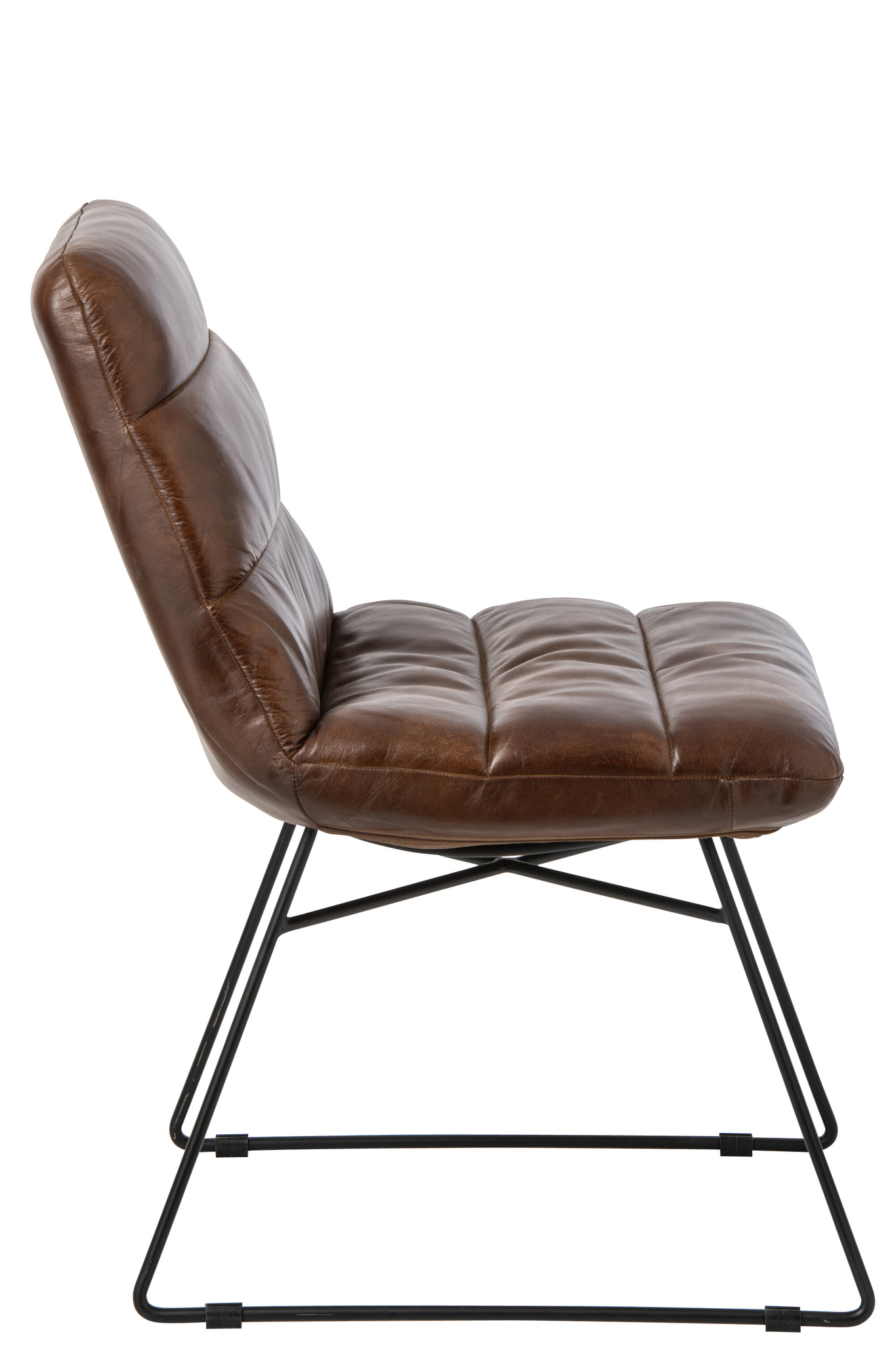 Stilvoller Esszimmerstuhl aus braunem Leder mit Metallgestell für elegante Wohn und Essbereiche.