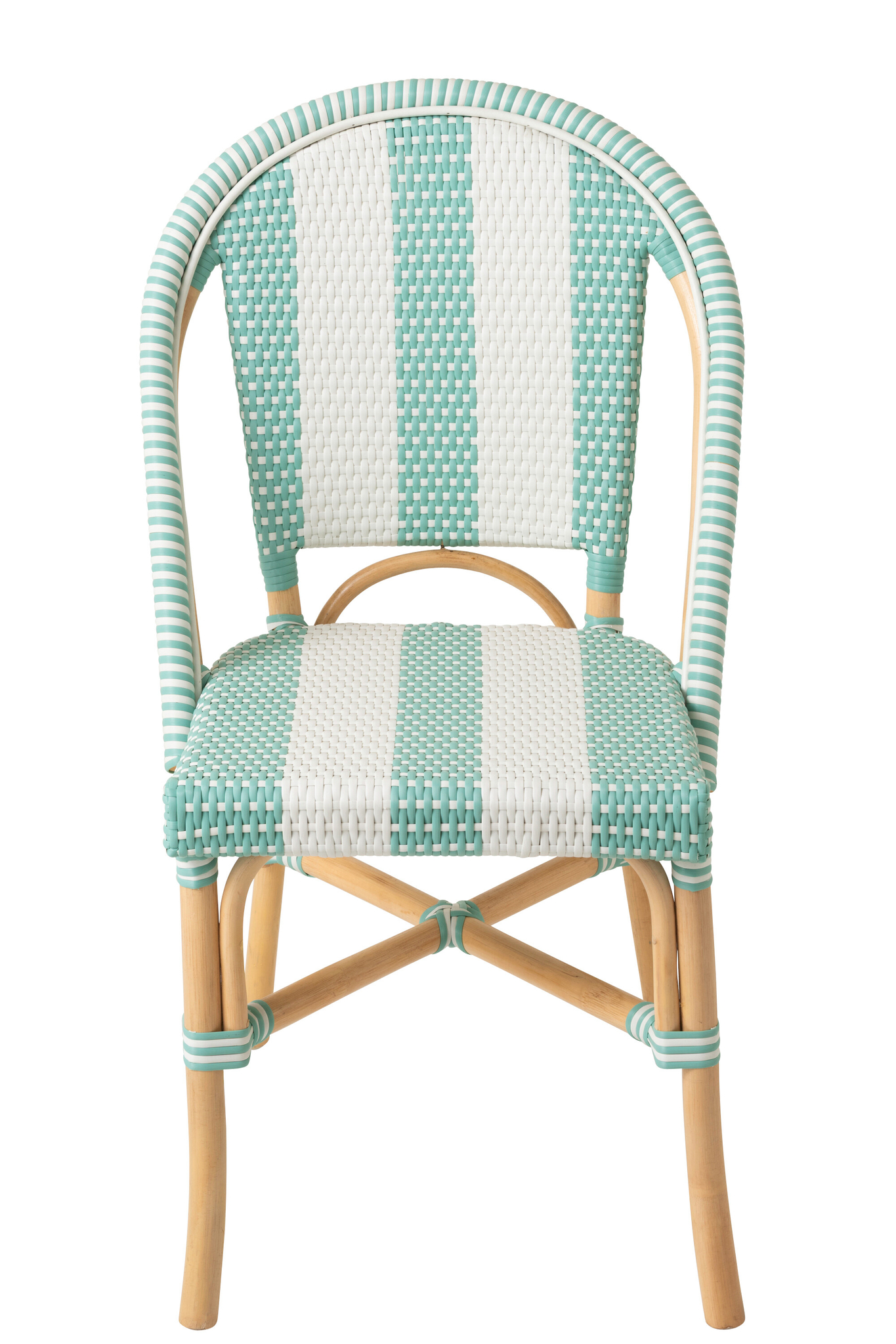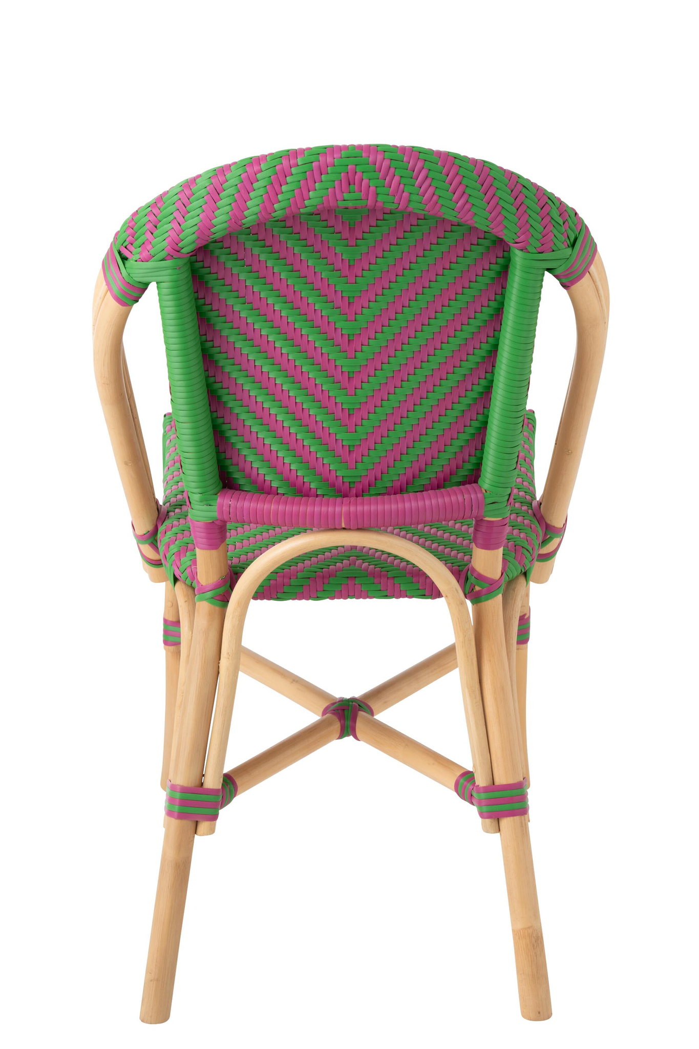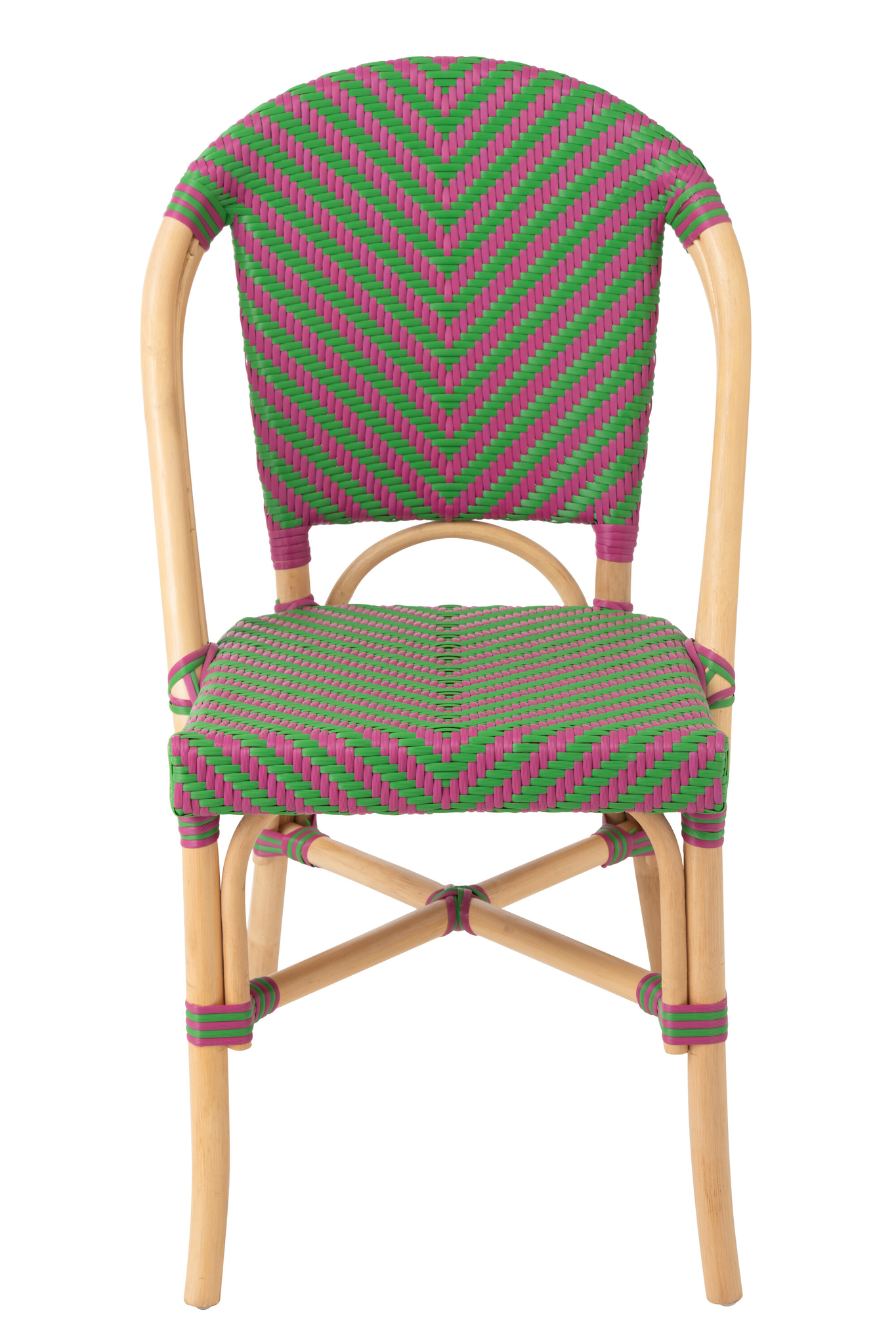 Farbenfroher Esszimmerstuhl aus Rattan und Kunststoff in Pink Grün für moderne Wohn und Gastrobereiche.