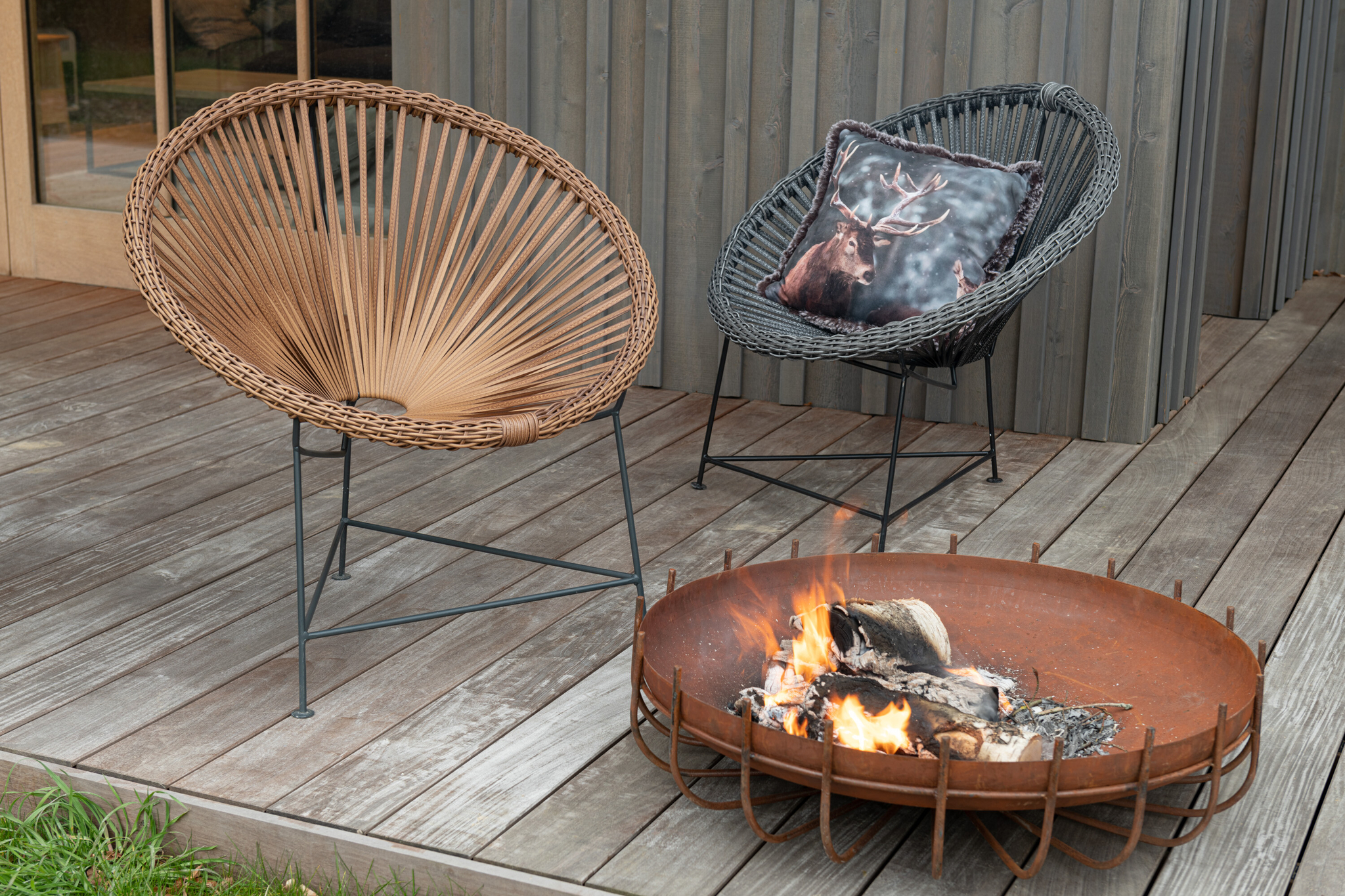 Robuster, niedriger Feuerkorb in Rostoptik aus 100 % Eisen. Die stabile Konstruktion und das zeitlose Design machen ihn ideal für Terrasse, Garten oder Balkon. Die großzügigen Maße von 83 × 19 × 83 cm sorgen für ausreichend Platz für ein gemütliches Feuer und setzen gleichzeitig dekorative Akzente im Außenbereich.