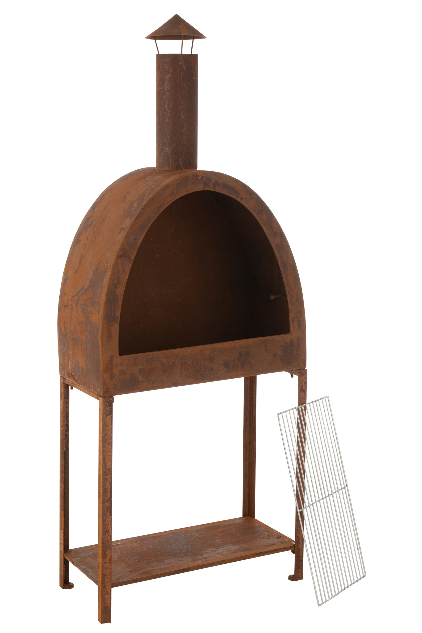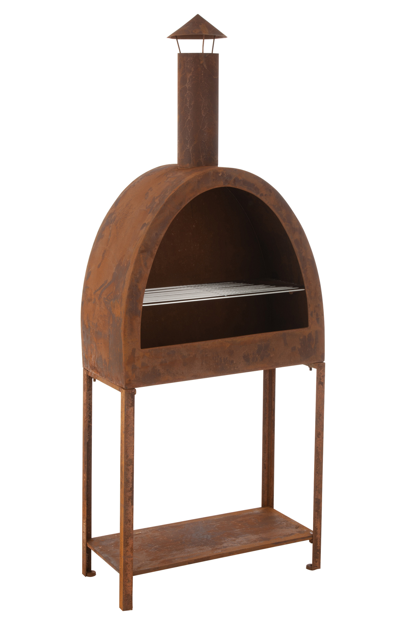 Heizgrill aus 100 % Eisen in Rostbraun langlebig und dekorativ für Terrasse und Garten.