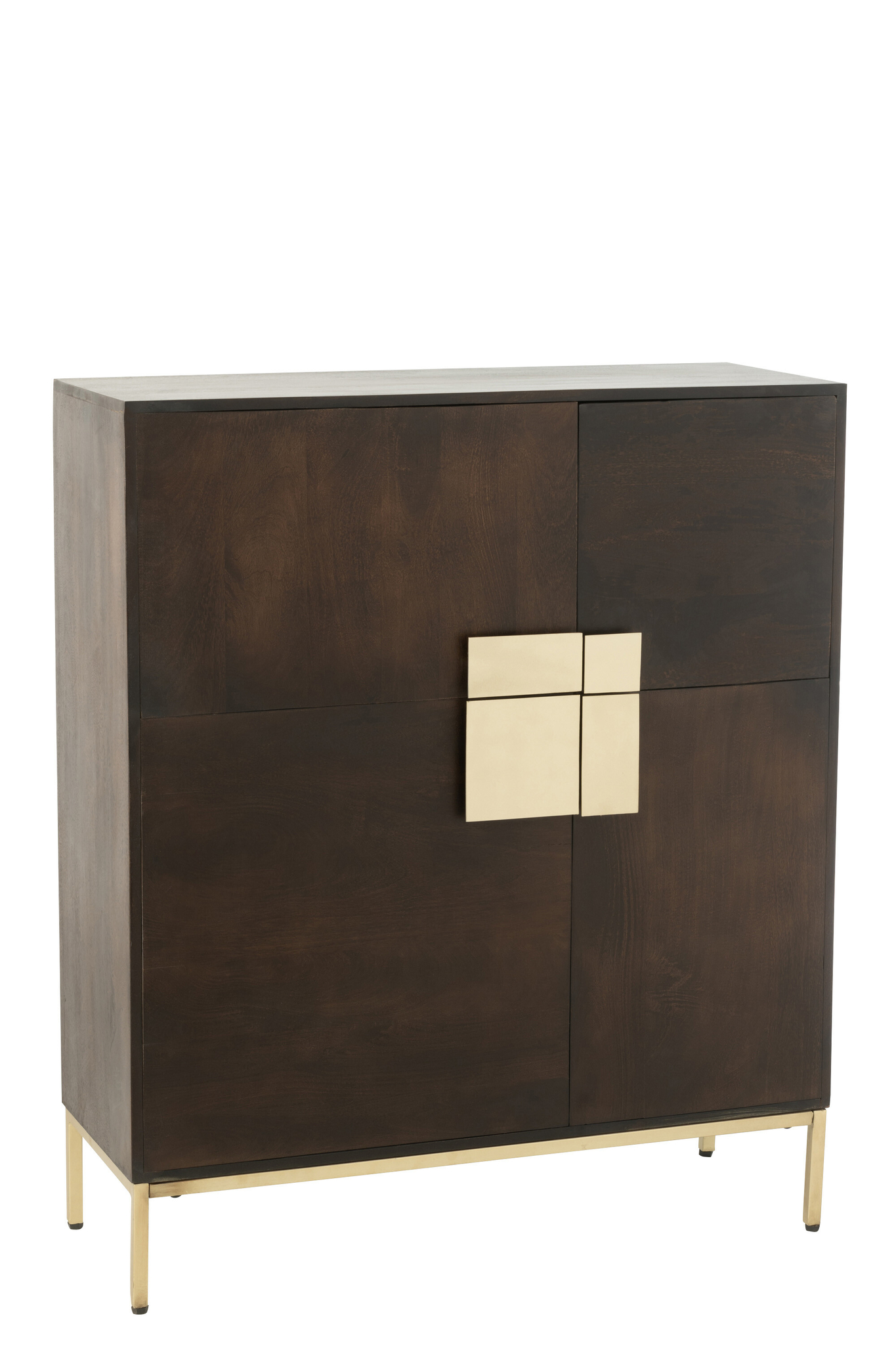 Stabiler Hochschrank aus Metall mit zwei Türen und einer Schublade in zeitlosem Design.