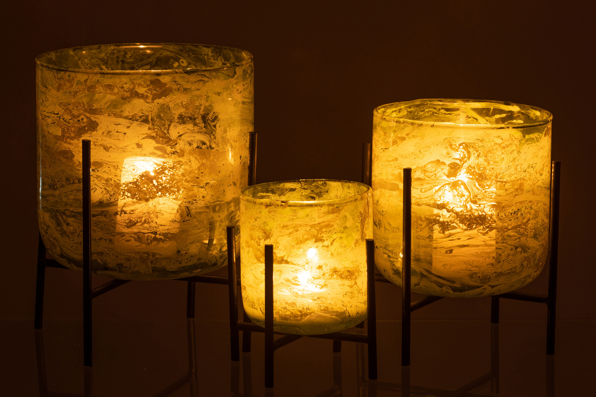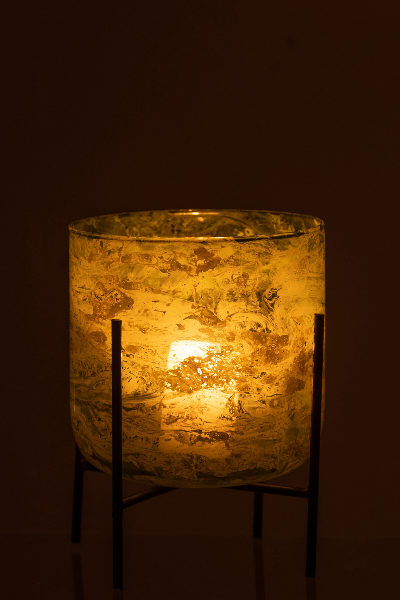 Dieser elegante Hurricane-Stand in marmorgrüner Optik überzeugt durch seine hochwertige Verarbeitung und das harmonische Zusammenspiel aus 90 % Glas und 10 % Eisen. Mit den Maßen 18 × 20 × 18 cm sowie einem Gewicht von 1,1 kg wirkt er stabil, kompakt und zugleich edel. Die marmorierte Farbgestaltung verleiht dem Objekt eine besondere Tiefe und macht es zu einem stilvollen Dekorationselement. Ideal geeignet für Kerzenarrangements und stimmungsvolle Lichtakzente in modernen Wohnräumen.