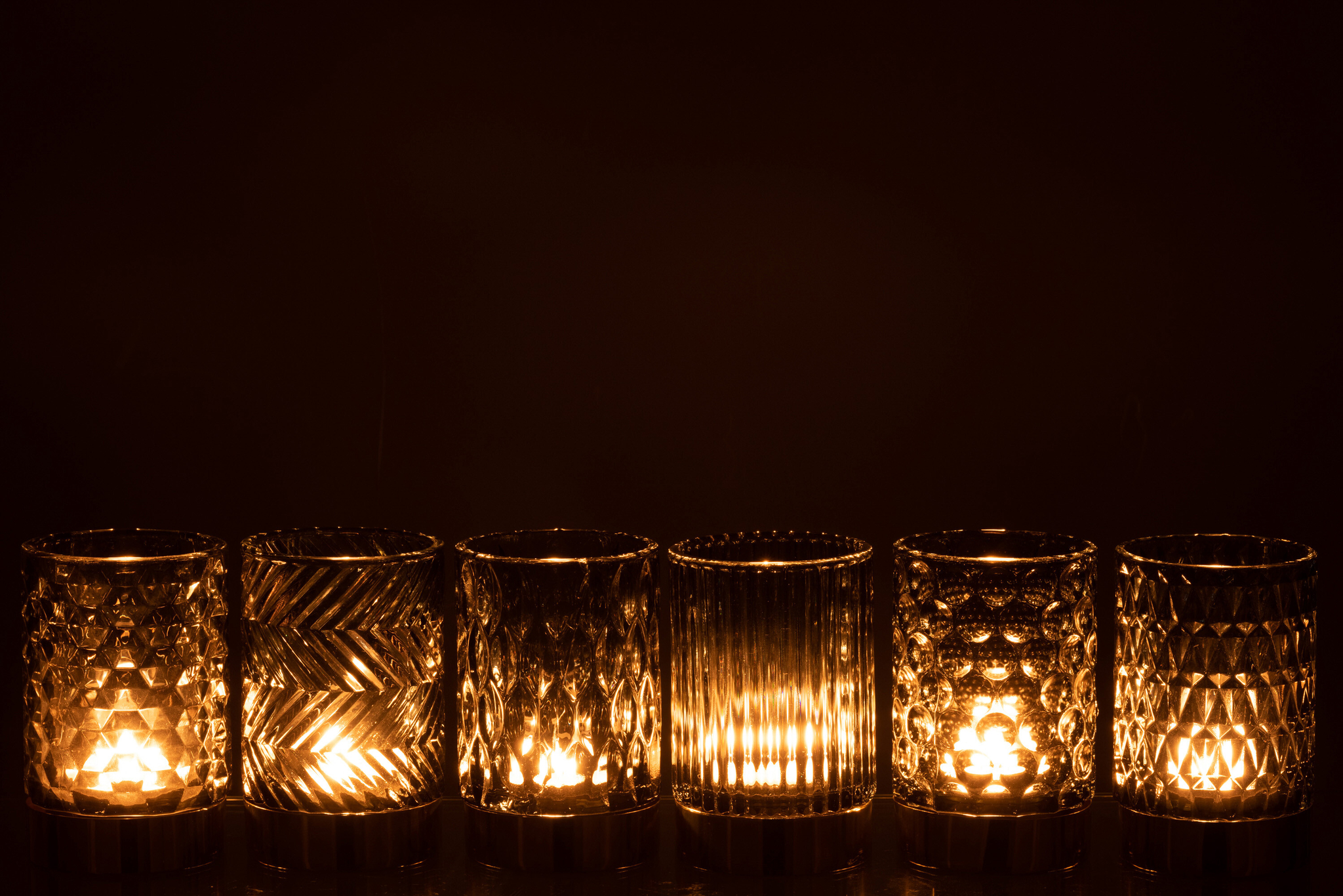 Klassisches 6er Set Hurricane-Windlichter aus Glas und Metall in Schwarz für elegante und stilvolle Lichtdekoration.