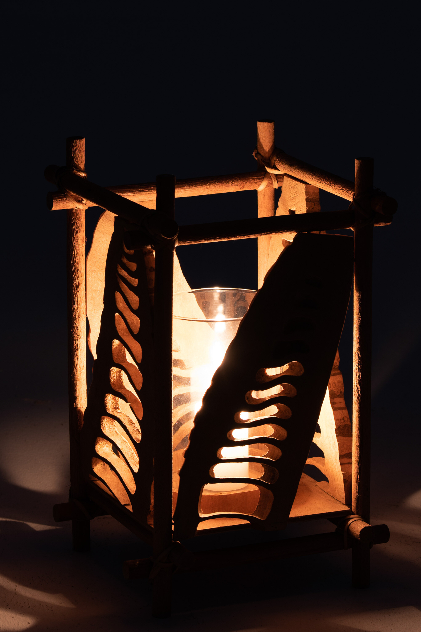 Dieser große Kerzenhalter aus Bambus und Glas überzeugt durch sein natürliches, harmonisches Design und die sorgfältig abgestimmte Materialkombination. Mit den Maßen 26 × 52 × 26 cm sowie einem Gewicht von 1,7 kg wirkt er stabil und zugleich organisch leicht. Die Verbindung aus Bambus, Eukalyptusholz, Glas, Eisen und Rattan verleiht dem Objekt eine warme, handwerkliche Ausstrahlung mit modernem Charakter. Das Glas sorgt für ein stimmungsvolles Lichtspiel und macht den Kerzenhalter zu einem dekorativen Highlight für stilvolle Wohn- und Objektbereiche.
