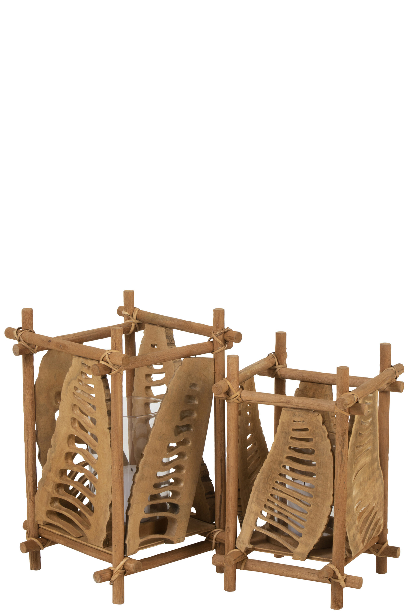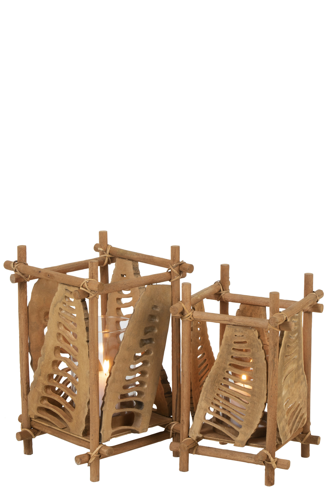Großer Kerzenhalter aus Bambus und Glas in Naturoptik für warme und stilvolle Wohnakzente.