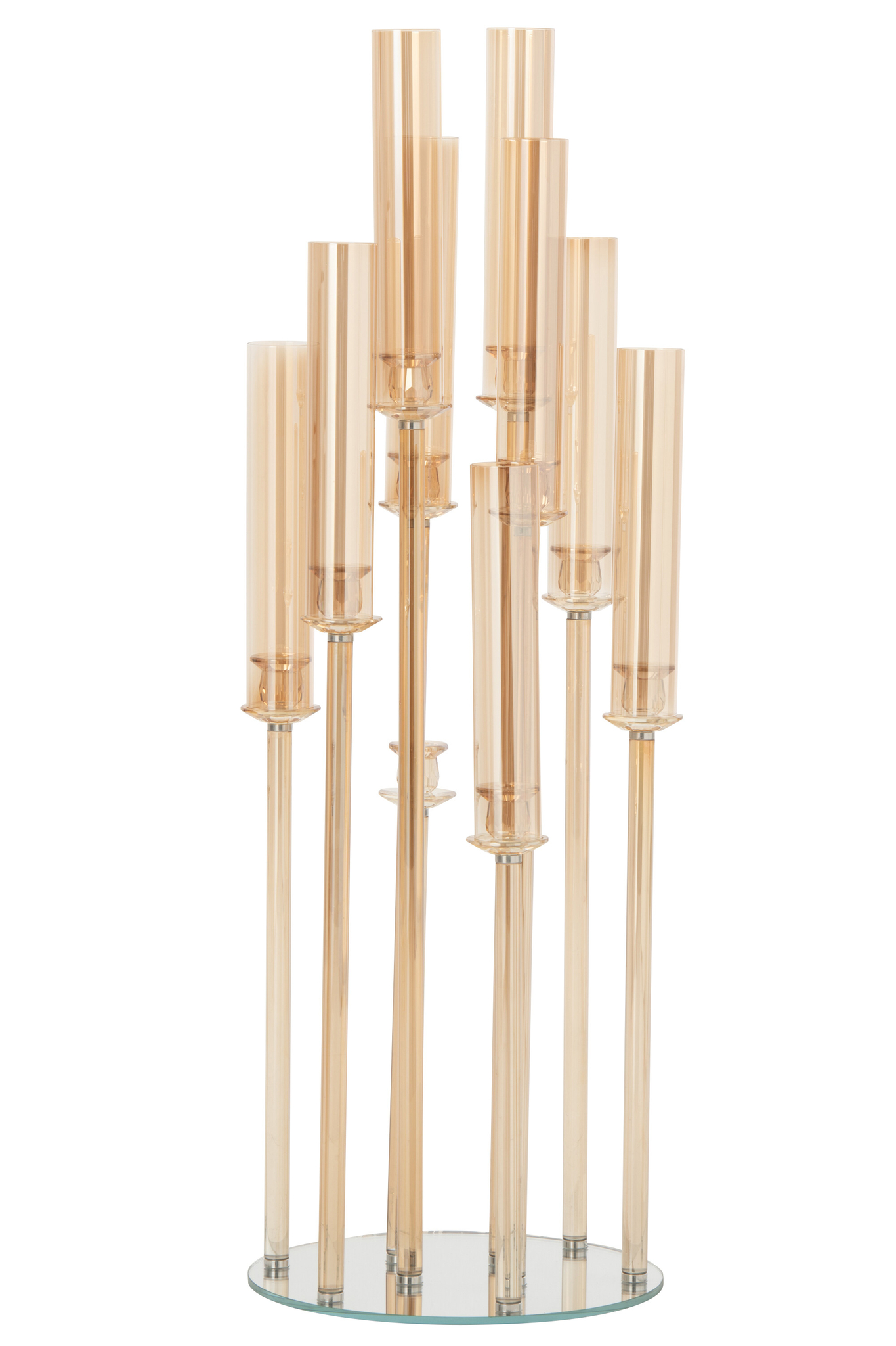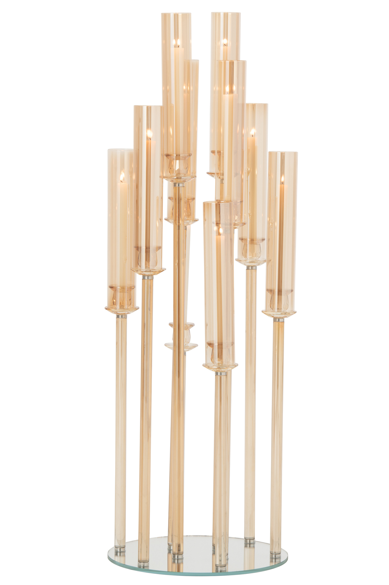 Luxuriöser großer Standkerzenhalter aus Kristall und Glas in Gold für repräsentative und elegante Raumgestaltung.