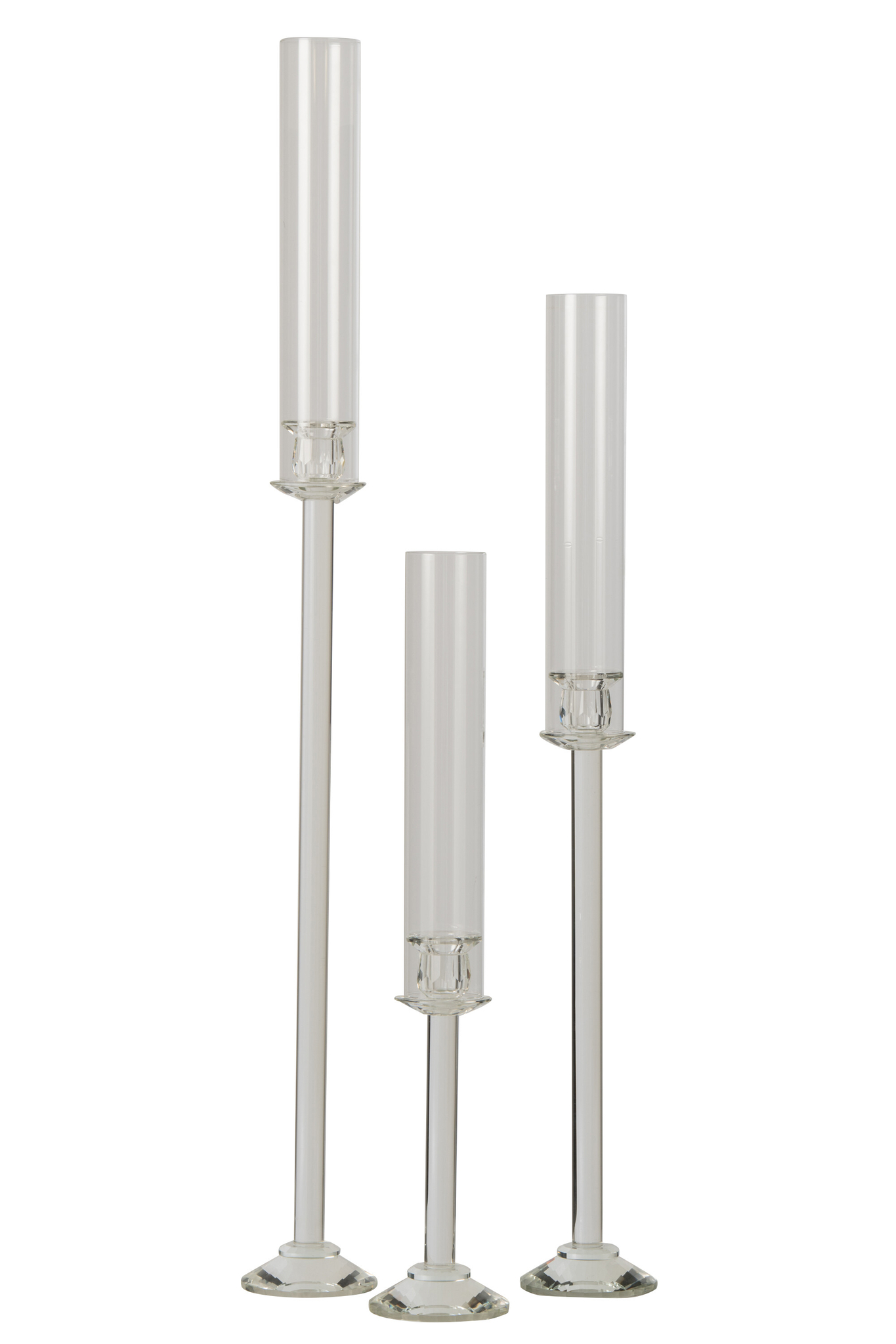 Hoher transparenter Kerzenhalter aus Kristall und Glas für elegante und zeitlose Wohnakzente.