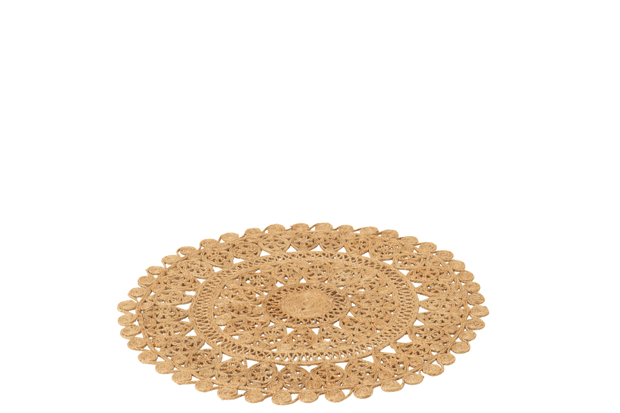 Der runde Teppich besteht aus 100 % Jute und überzeugt durch seine natürliche, robuste und nachhaltige Materialqualität. Mit einem Durchmesser von 80 Zentimetern, einer Höhe von 0,5 Zentimetern und einem Gewicht von 0,795 Kilogramm ist er kompakt und vielseitig einsetzbar. Das orientalisch inspirierte Design in Naturfarbe verleiht dem Teppich eine zeitlose und elegante Ausstrahlung, die sich harmonisch in verschiedene Wohnstile einfügt. Er eignet sich ideal für dekorative Akzente in Wohnräumen und verbindet Natürlichkeit mit stilvollem Design.