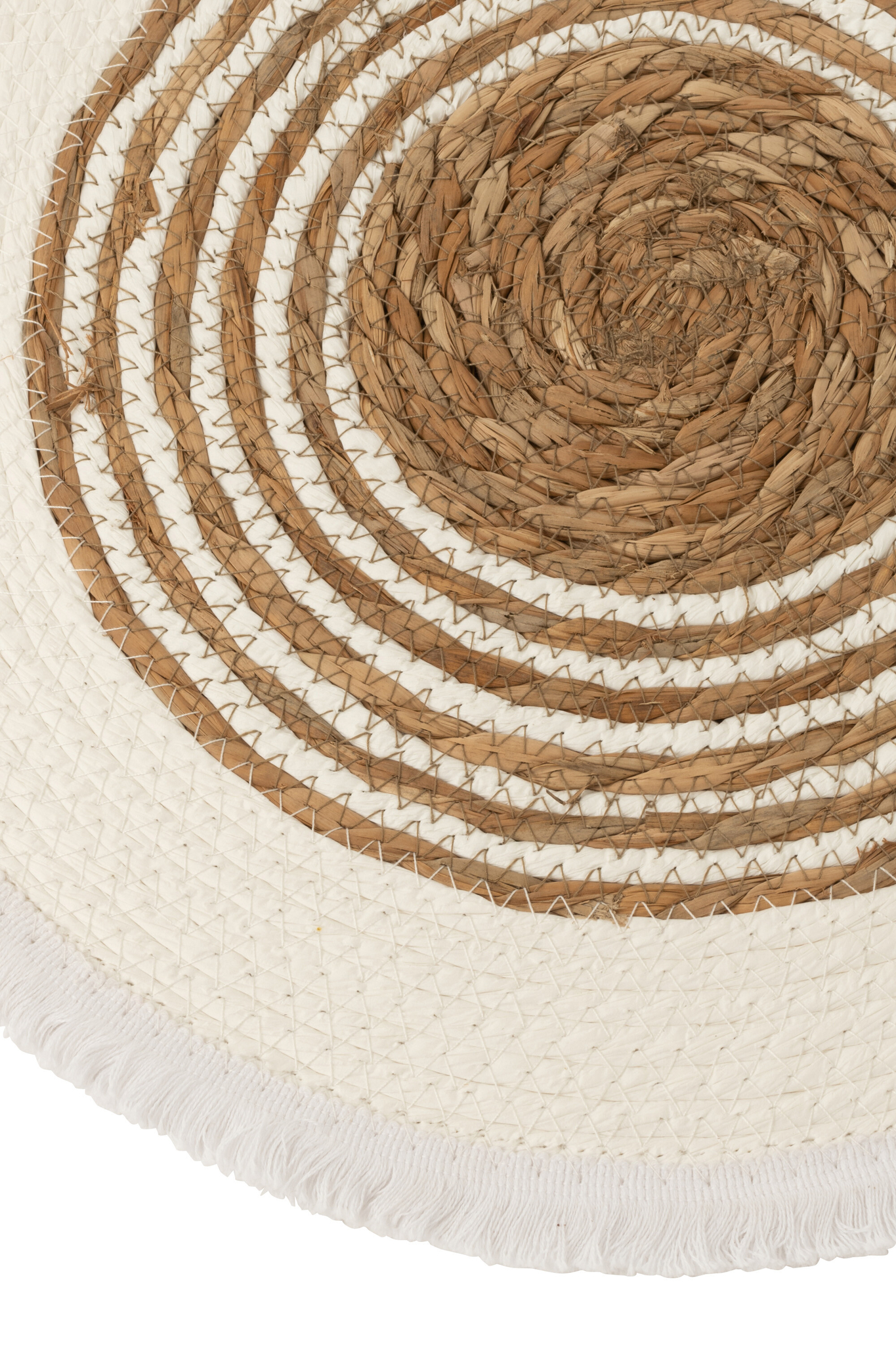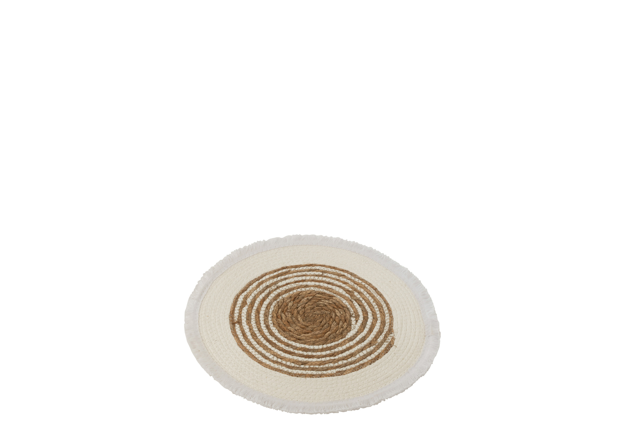 Natürliches gewebtes Platzset in Weiß und Natur für stilvolle Tischgestaltung.