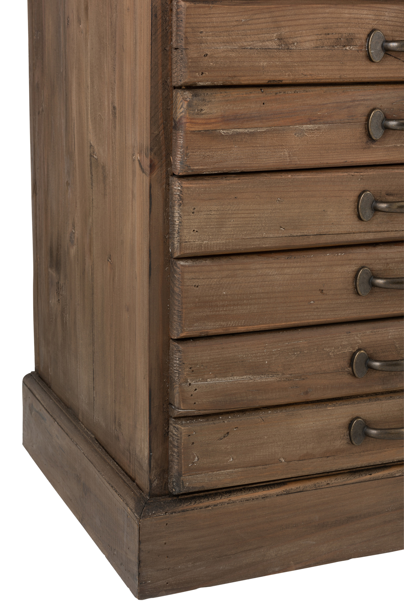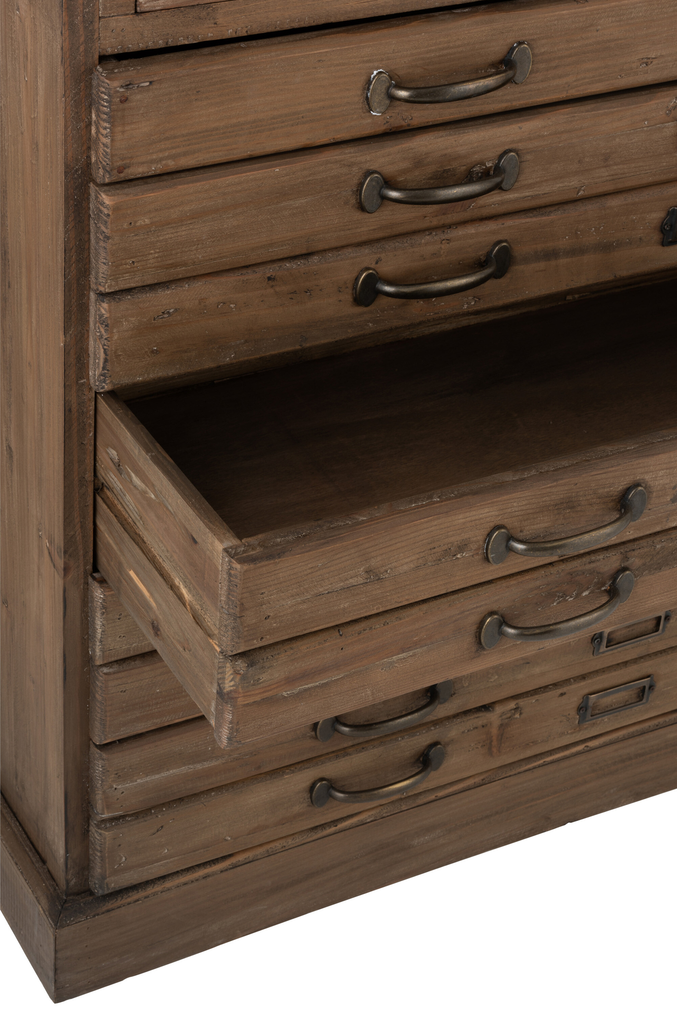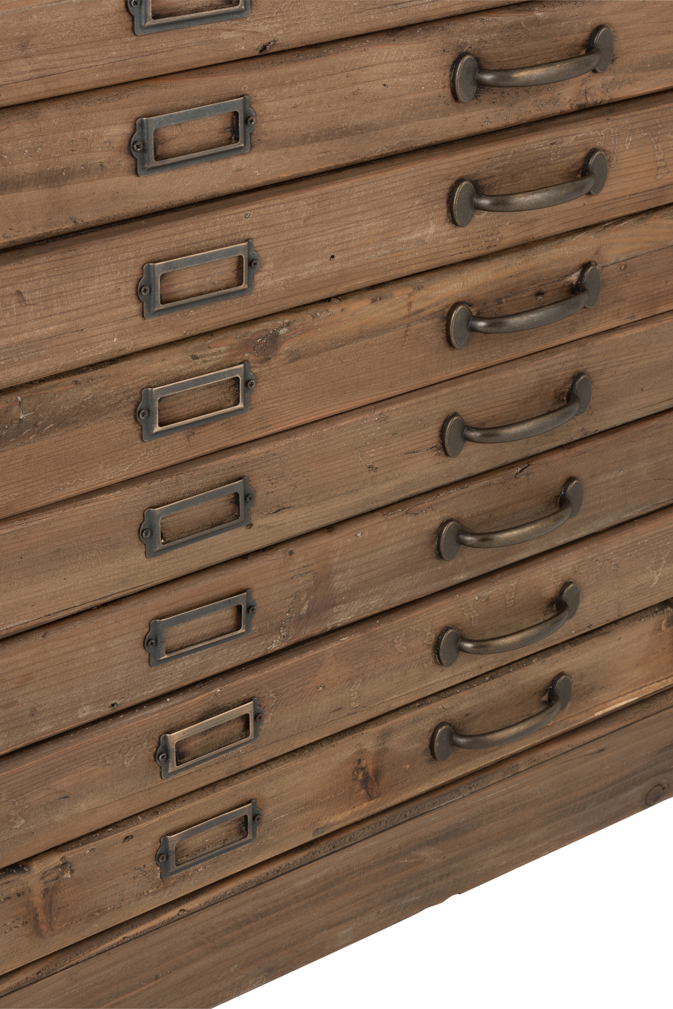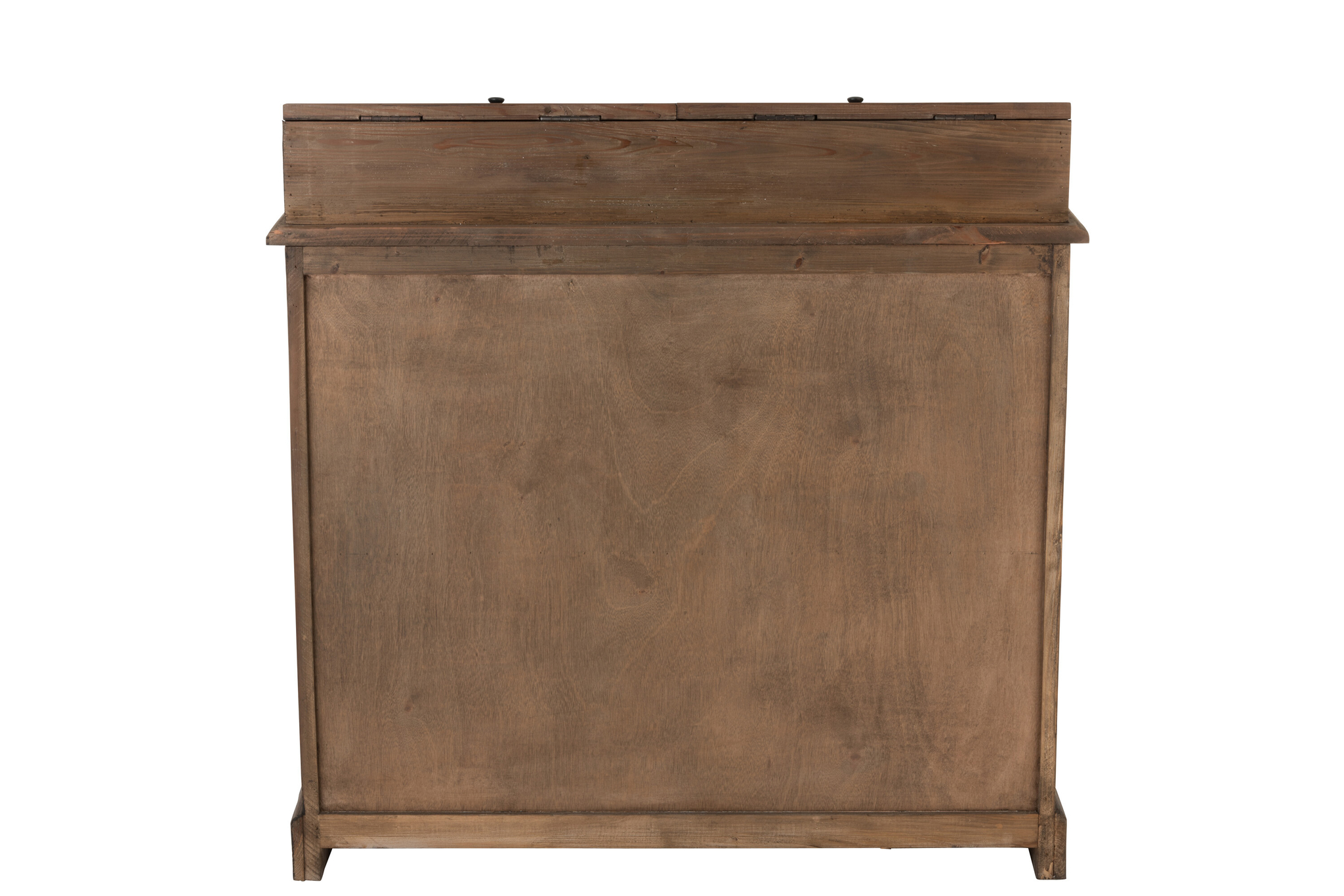 Diese Kommode kombiniert elegante Braun-Töne mit hochwertiger Verarbeitung aus 82 % Recyclingholz, 15 % Sperrholz und 3 % Glas. Mit den Maßen 46,5 cm Breite, 110 cm Länge und 108,5 cm Höhe bietet sie praktischen Stauraum und eine Vitrine für Dekoration oder besondere Gegenstände. Das Gewicht von 49,2 kg unterstreicht die stabile und langlebige Konstruktion. Das zeitlose Design macht die Kommode zu einem stilvollen Möbelstück für anspruchsvolle Wohnräume.