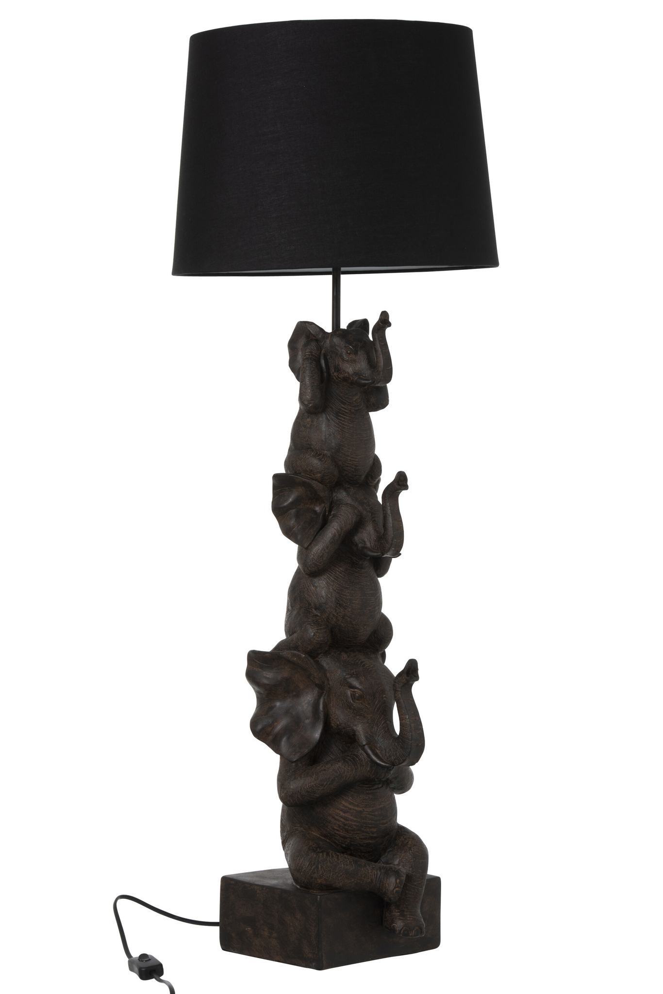 „Elegantly designed Lamp with three Elephants in Brown, made of high-quality Polyresin material, perfect for adding a touch of sophistication to your home decor. Enhance your living space with this unique piece.“