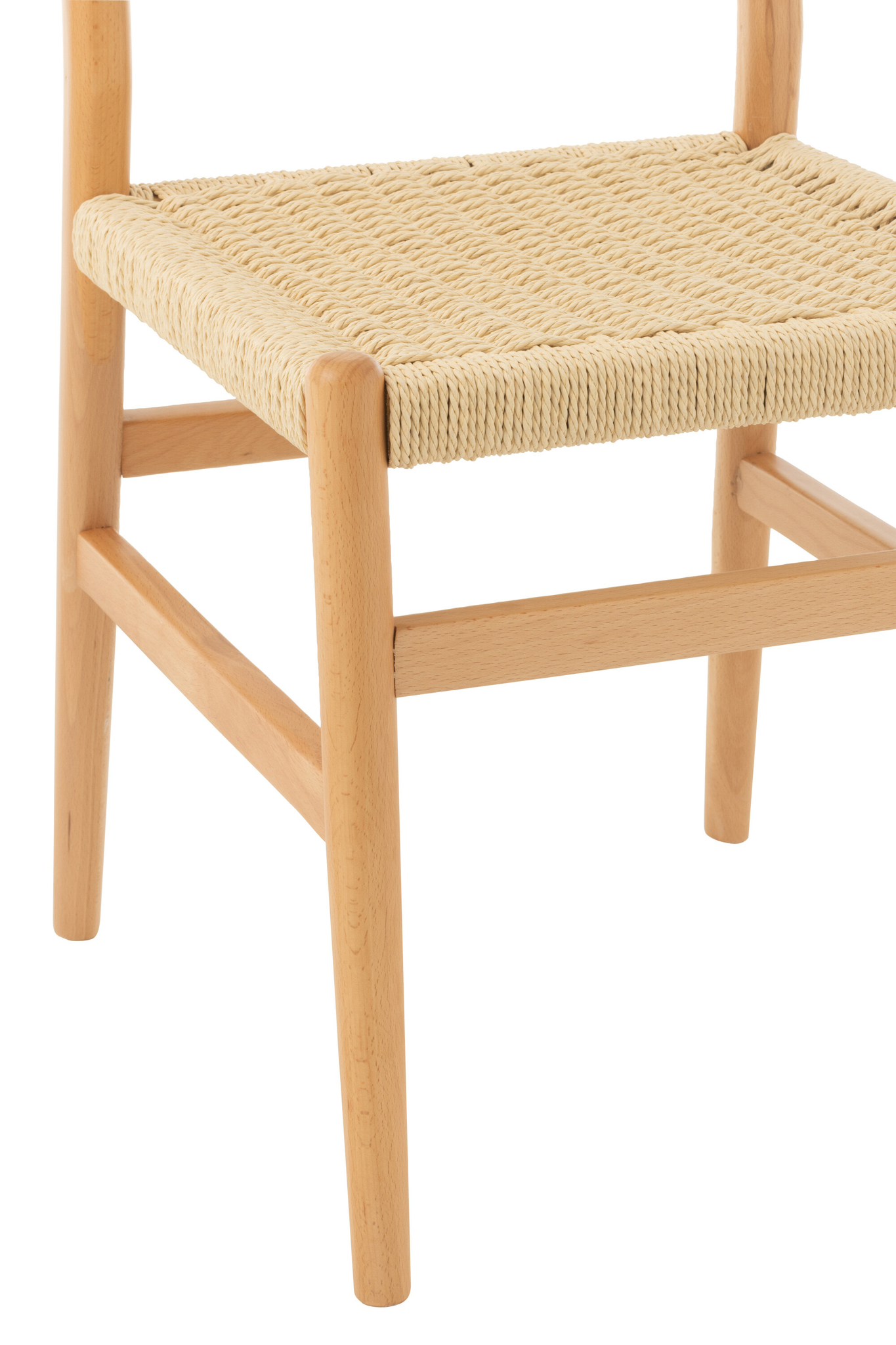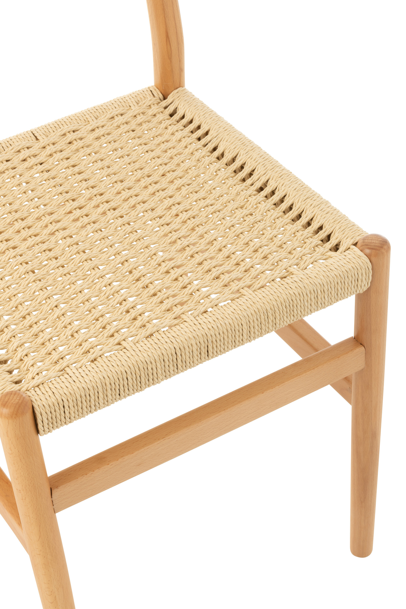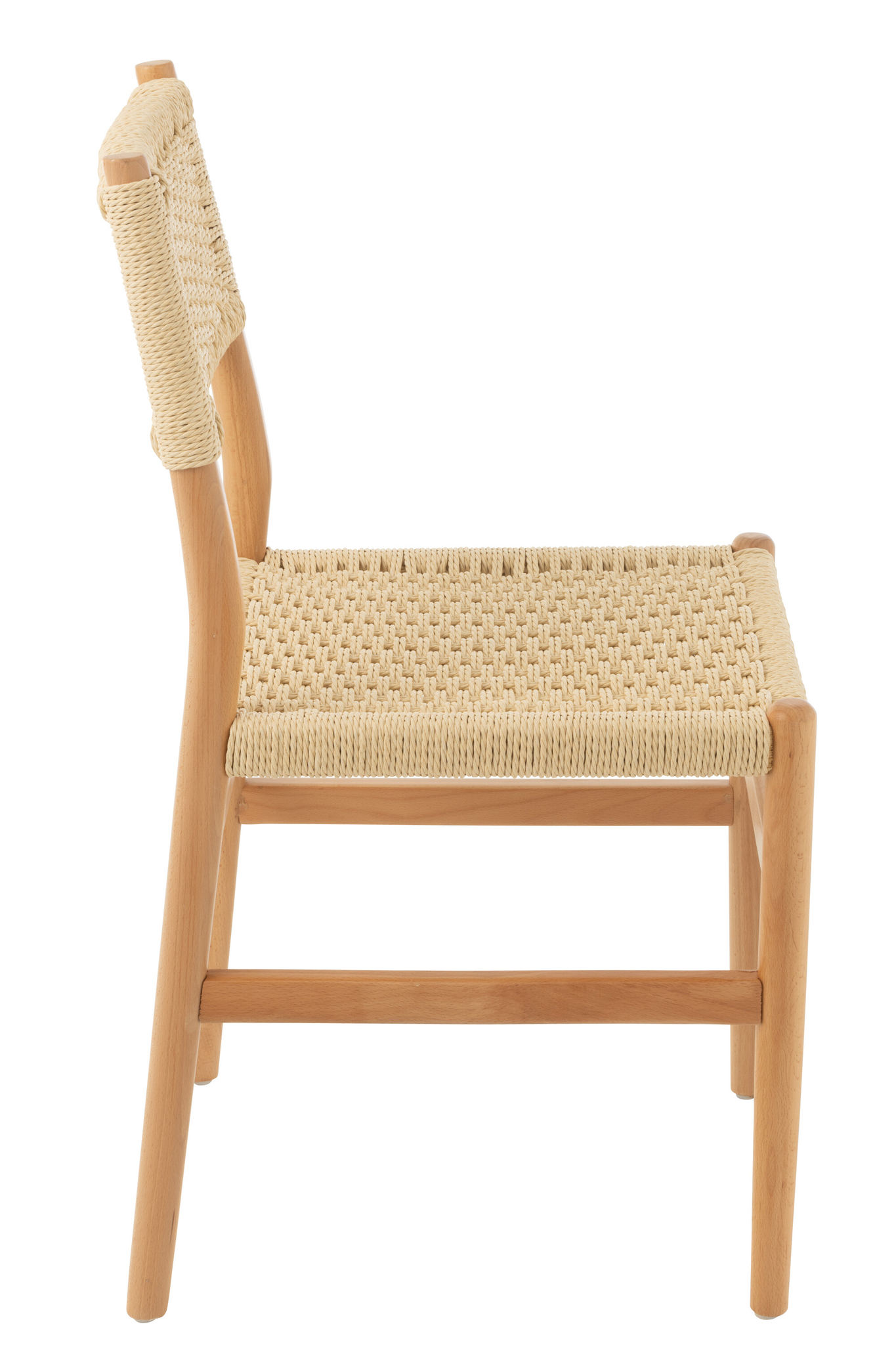 Zeitloser Holzstuhl aus Buche mit Naturseil für stilvolle und langlebige Einrichtung.