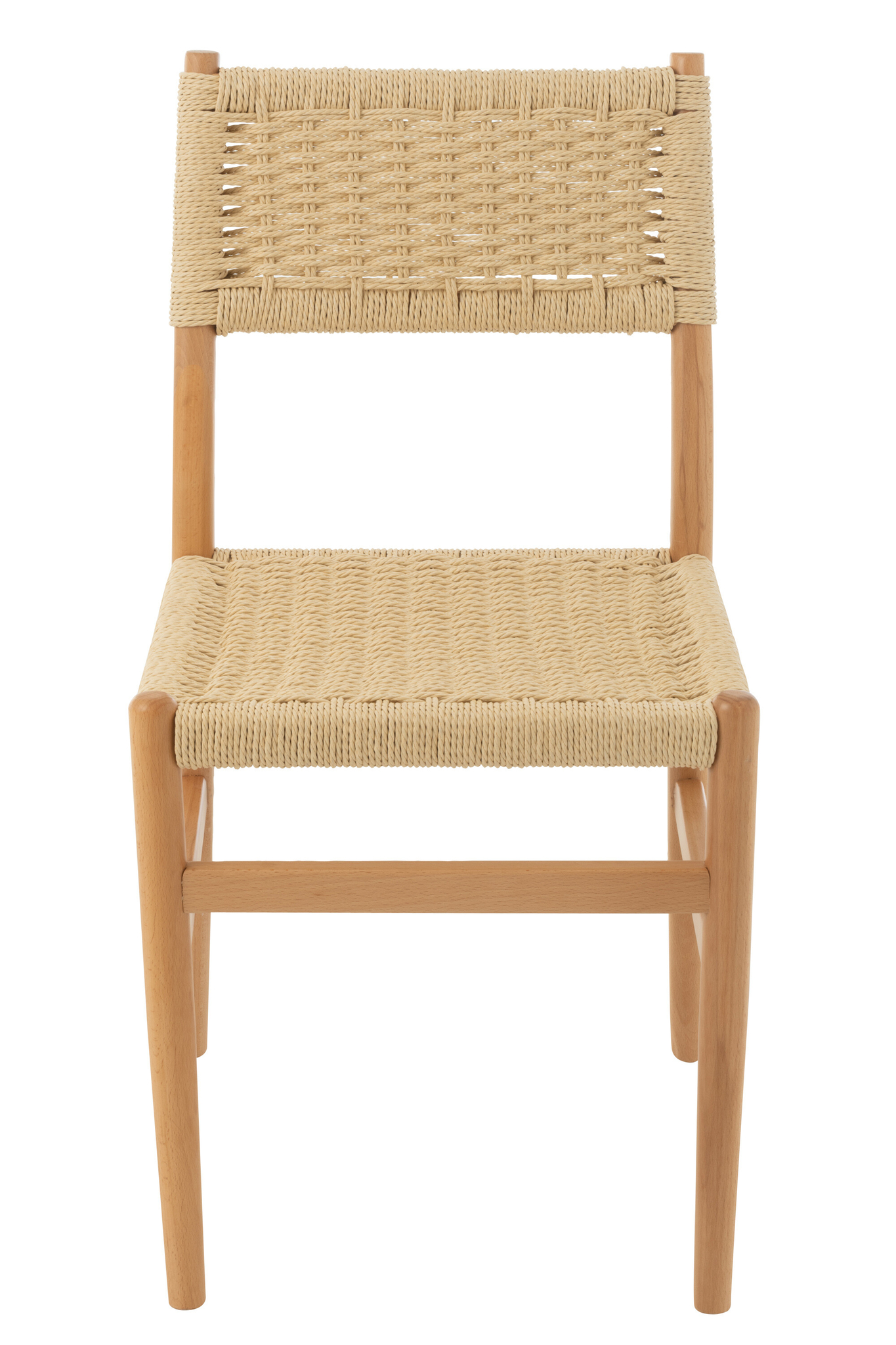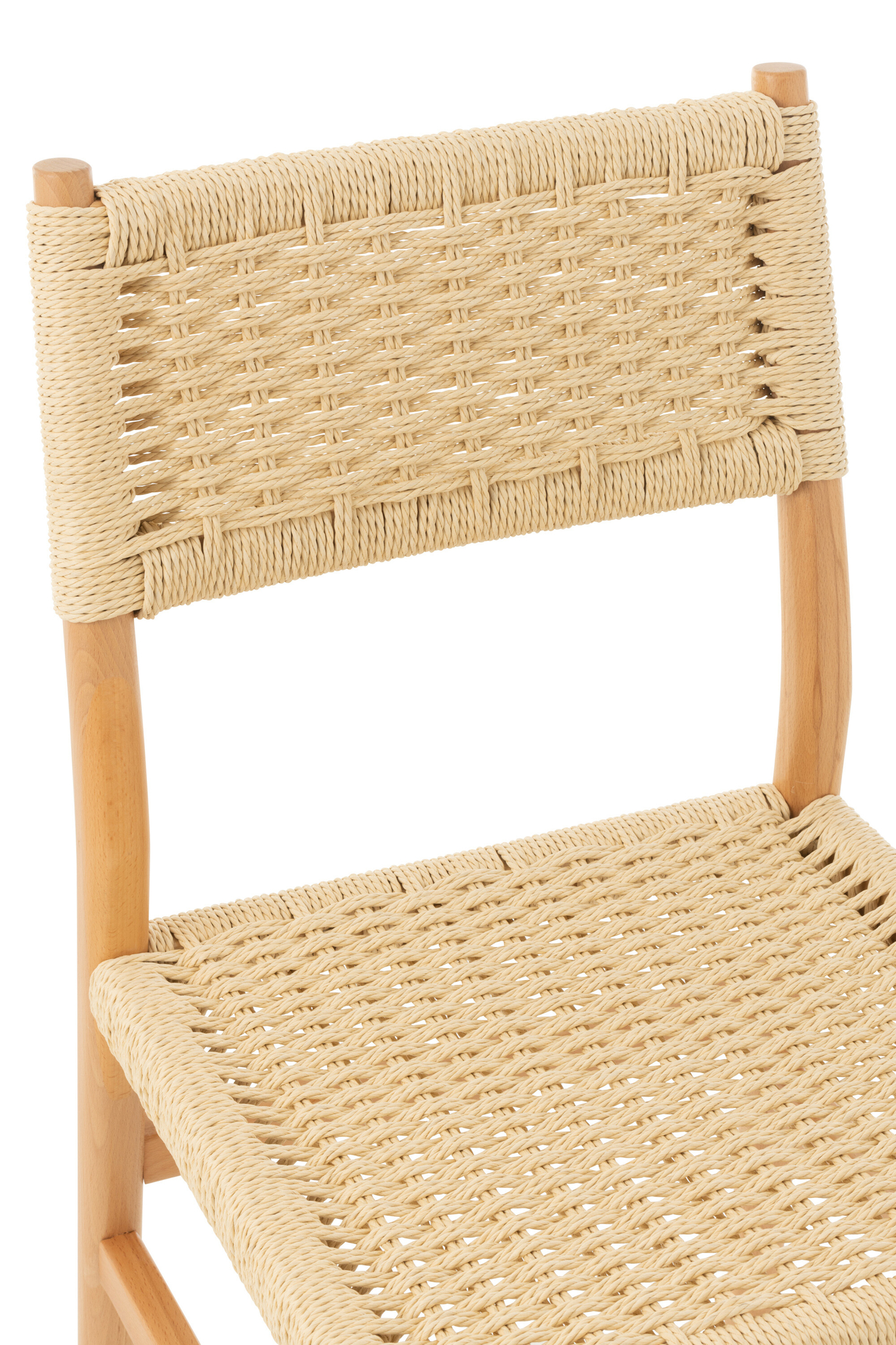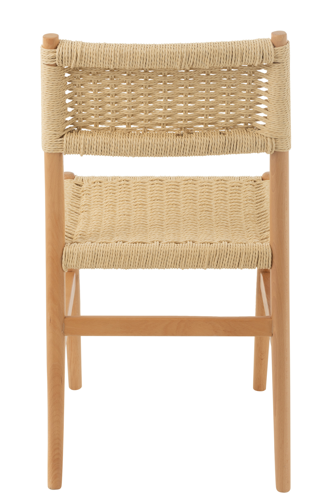 Zeitloser Holzstuhl aus Buche mit Naturseil für stilvolle und langlebige Einrichtung.