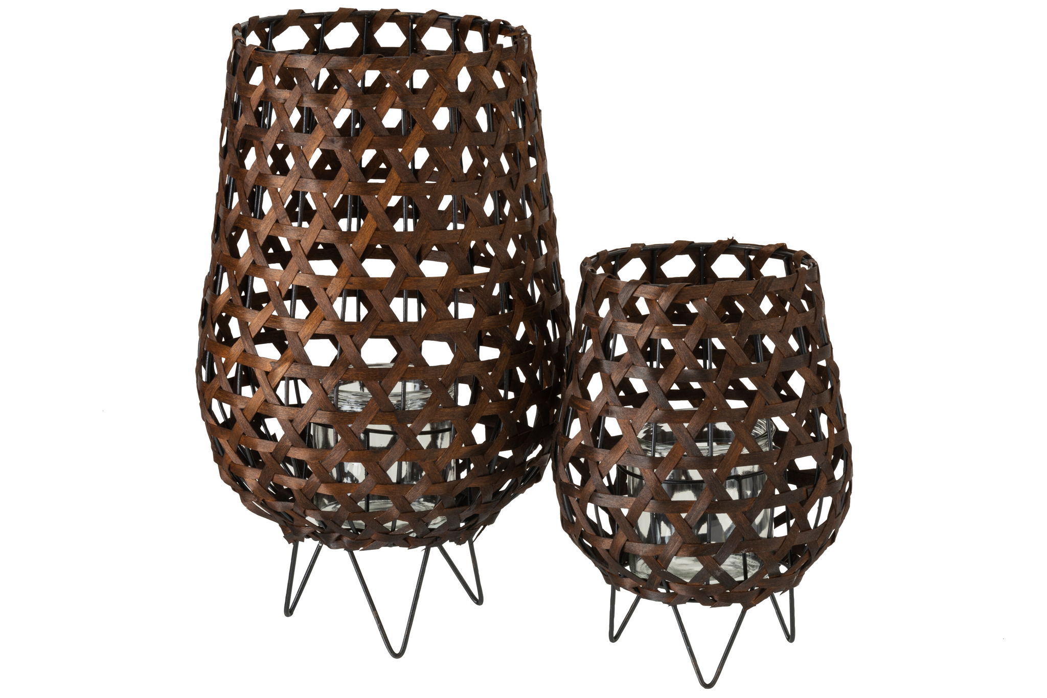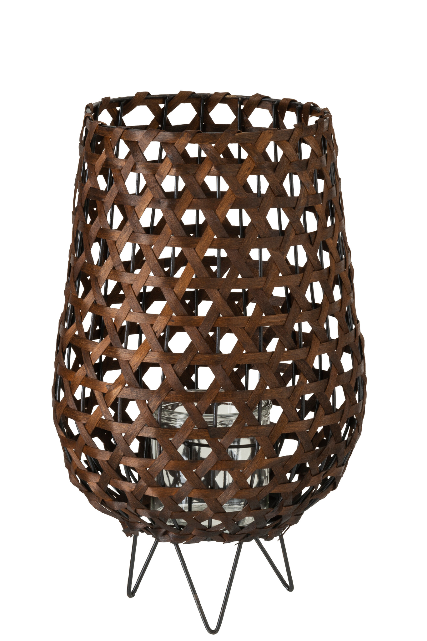 Schlagwörter: Braun, Metall, Holz, Dekoration, Eukalyptusholz, Wohnaccessoire, Laterne, Vasenform