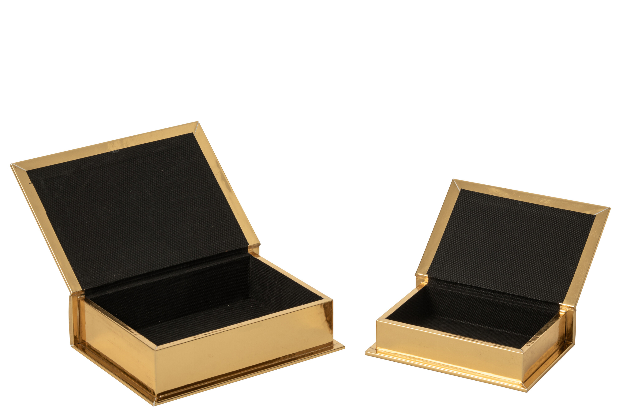Elegantes Set aus zwei glänzenden Boxen in edlem Goldton. Das moderne Design macht die Boxen zu einem stilvollen Blickfang und eignet sich ideal zur Aufbewahrung von Accessoires, Schmuck oder kleinen Alltagsgegenständen. Die hochwertige Materialkombination aus 60 % MDF, 20 % Kunstleder und 20 % Textil sorgt für Stabilität und eine ansprechende Optik. Mit den Maßen von 20 x 7 x 28 cm bieten die Boxen praktischen Stauraum bei kompakter Größe.