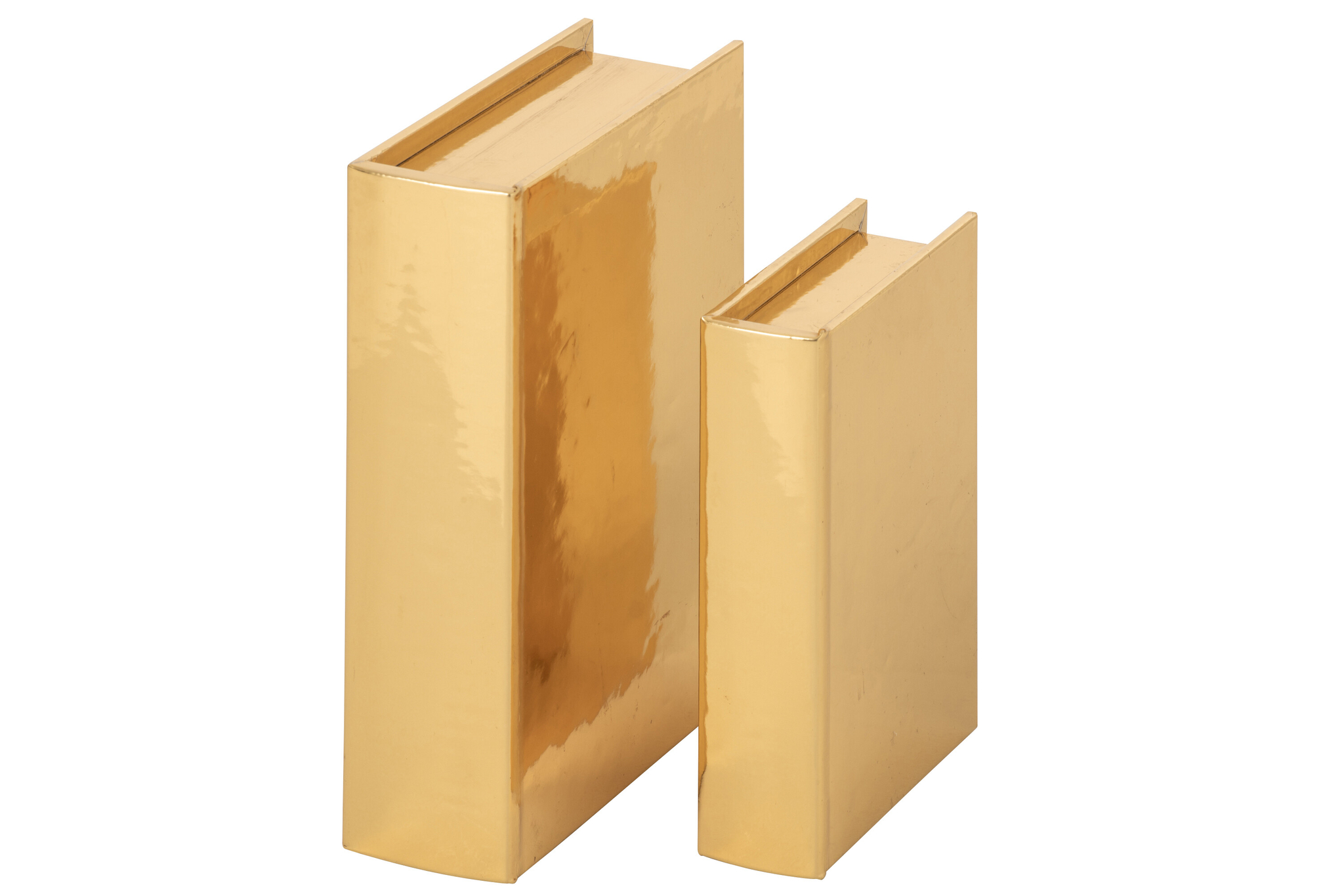 2er Set glänzende MDF Boxen in Gold, Material Kunstleder 20 %, MDF 60 %, Textil 20 %, Maße 20 x 7 x 28 cm.
