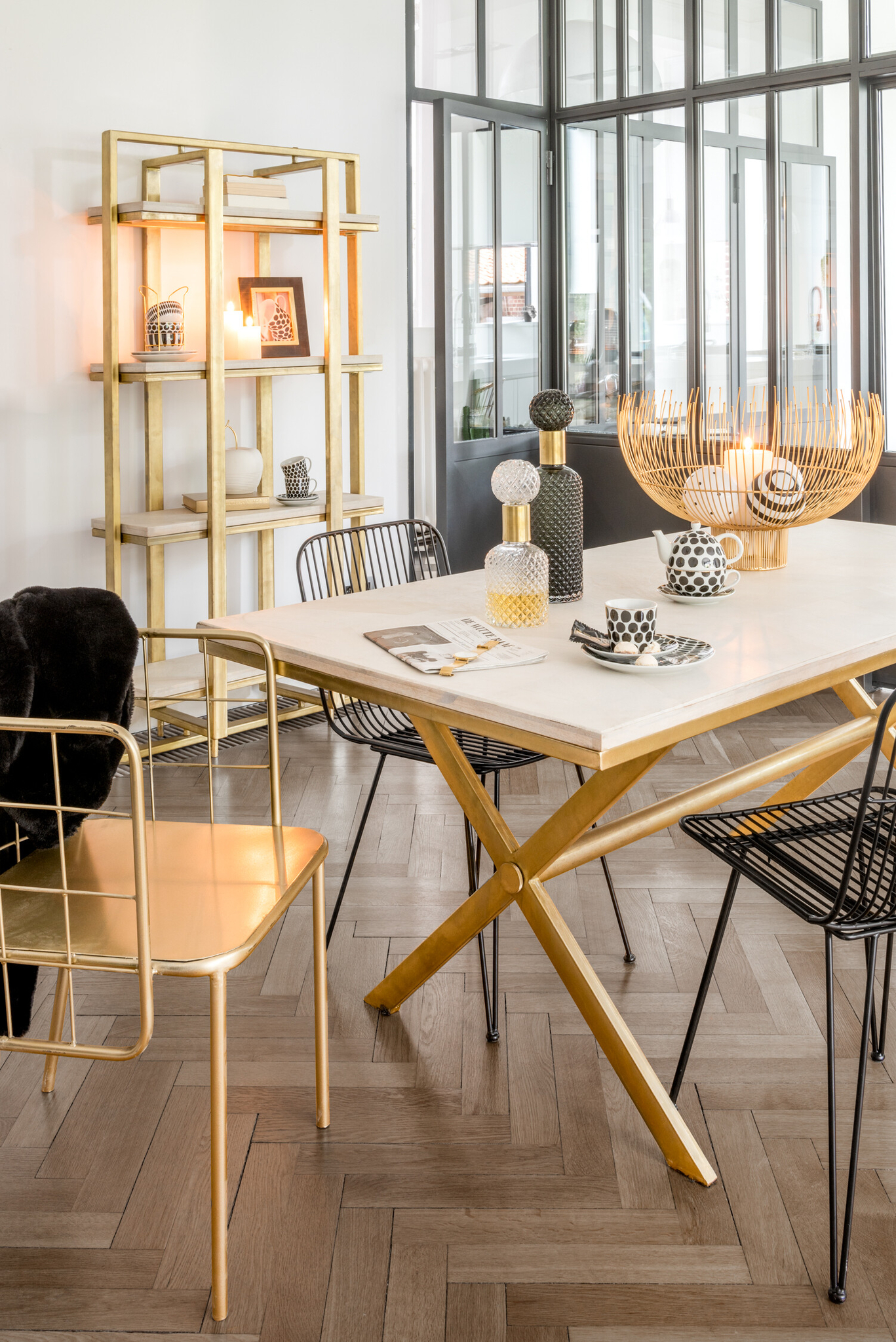 Moderner Sessel aus Metall in edler Goldoptik für stilvolle Innenräume.