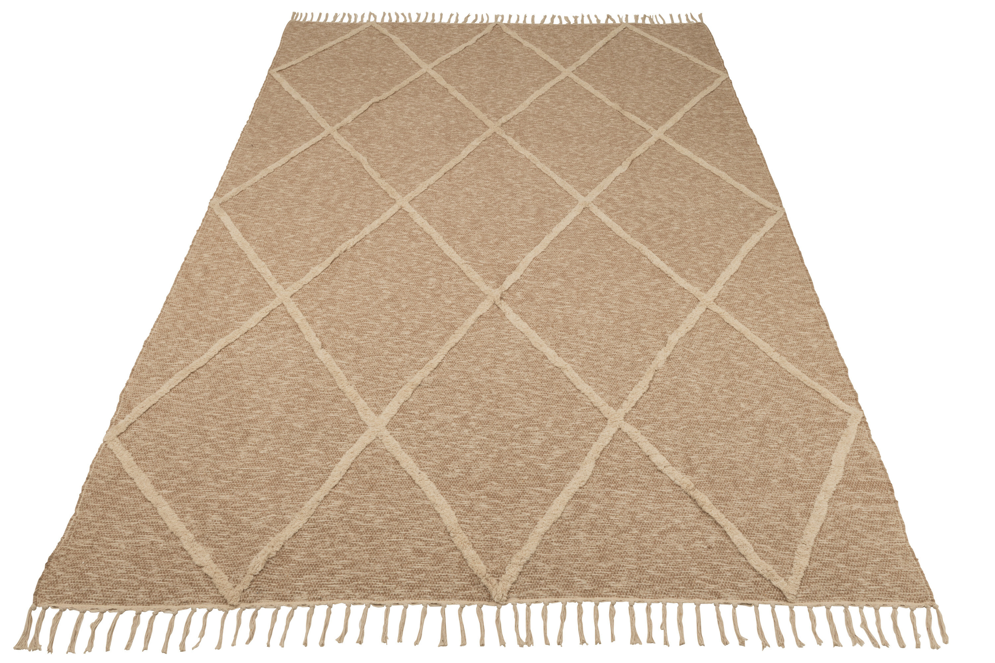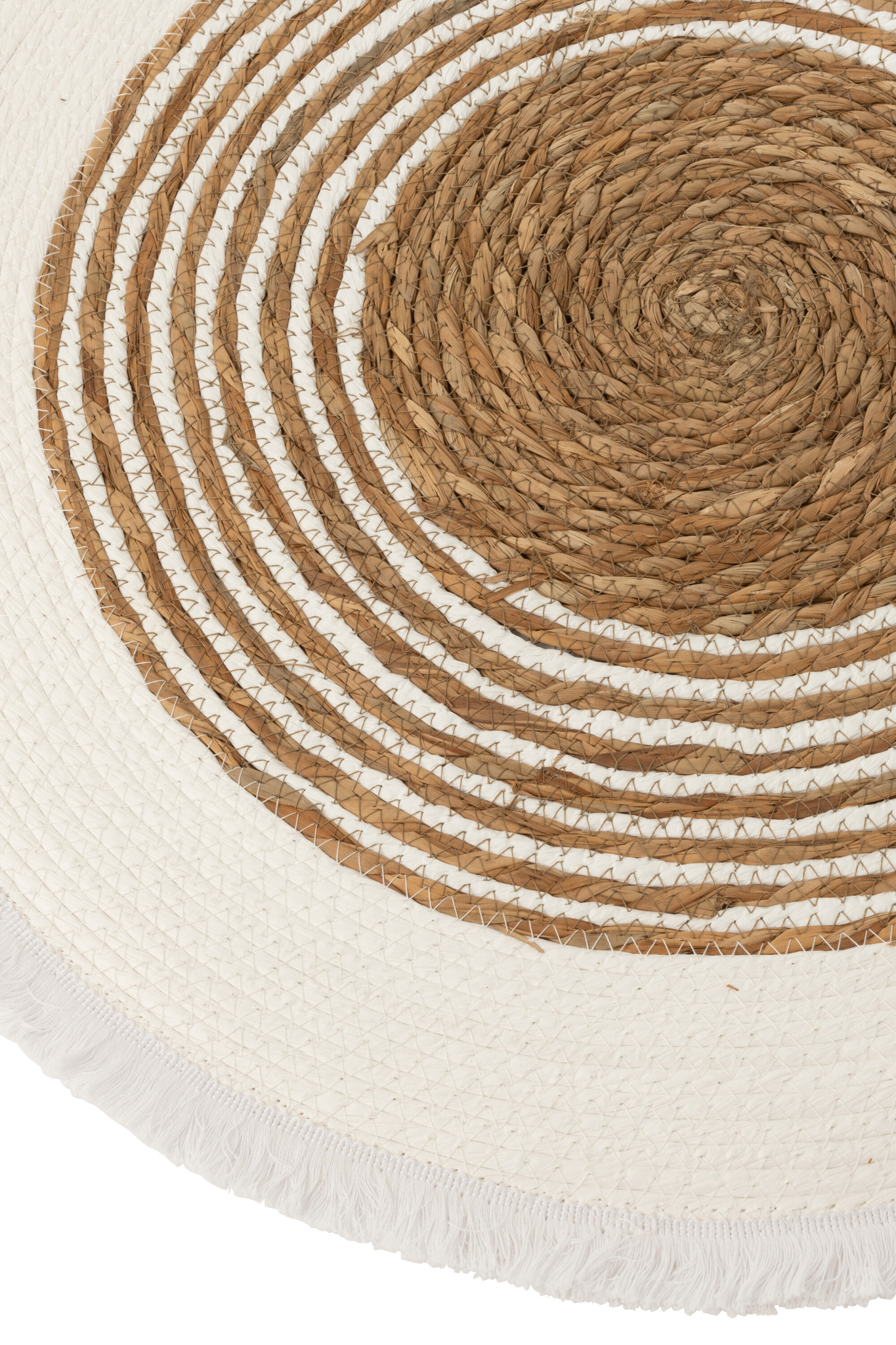 Der gewebte Teppich besteht aus 55 % Papier, 44 % Gras und 1 % Polyester und überzeugt durch seine natürliche Optik sowie seine leichte und dennoch stabile Verarbeitung. Mit den Maßen 70 × 70 × 1 Zentimeter (B × L × H) und einem Gewicht von 0,735 Kilogramm ist er kompakt und vielseitig einsetzbar. Die naturweiße Farbgebung verleiht dem Teppich eine ruhige und elegante Ausstrahlung, die sich harmonisch in verschiedene Wohnstile einfügt. Er eignet sich ideal als dekoratives Element und setzt dezente, natürliche Akzente im Raum.