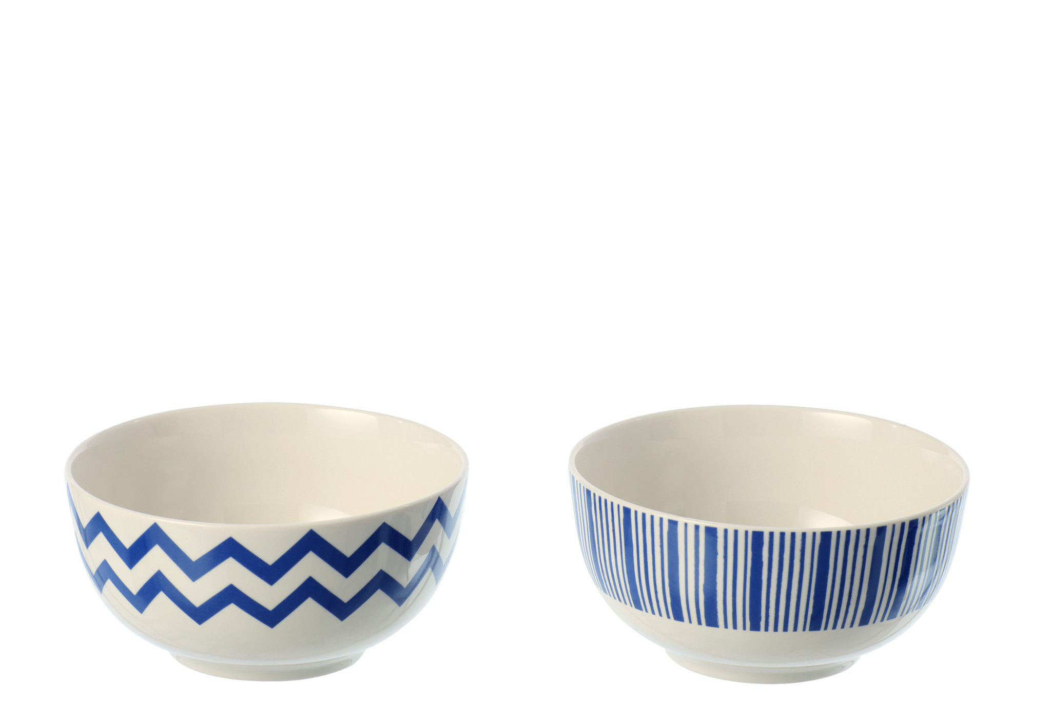 Zwei elegante Porzellanschalen in Blau/Weiß, robust und stilvoll für Servieren und Dekoration.