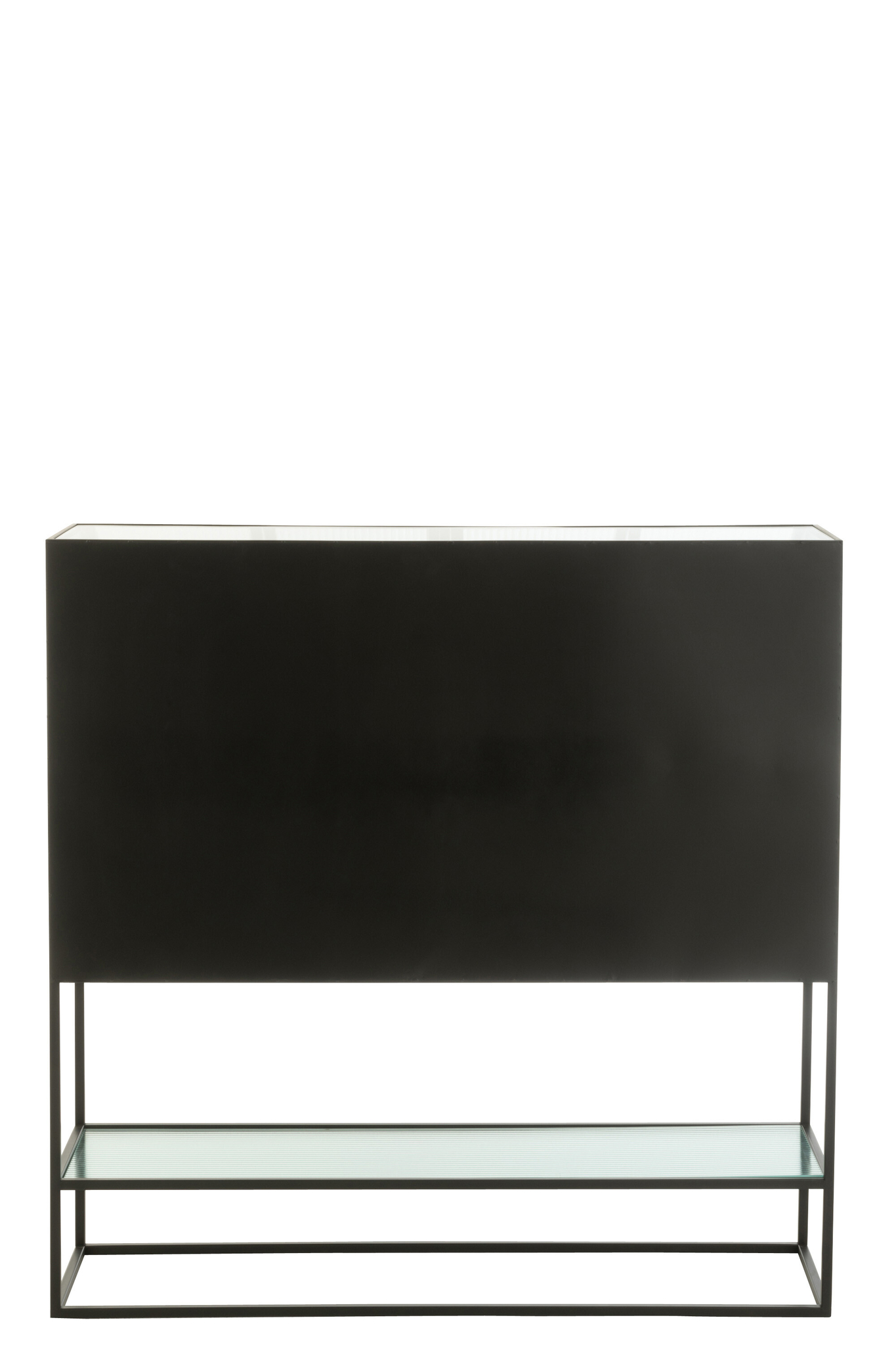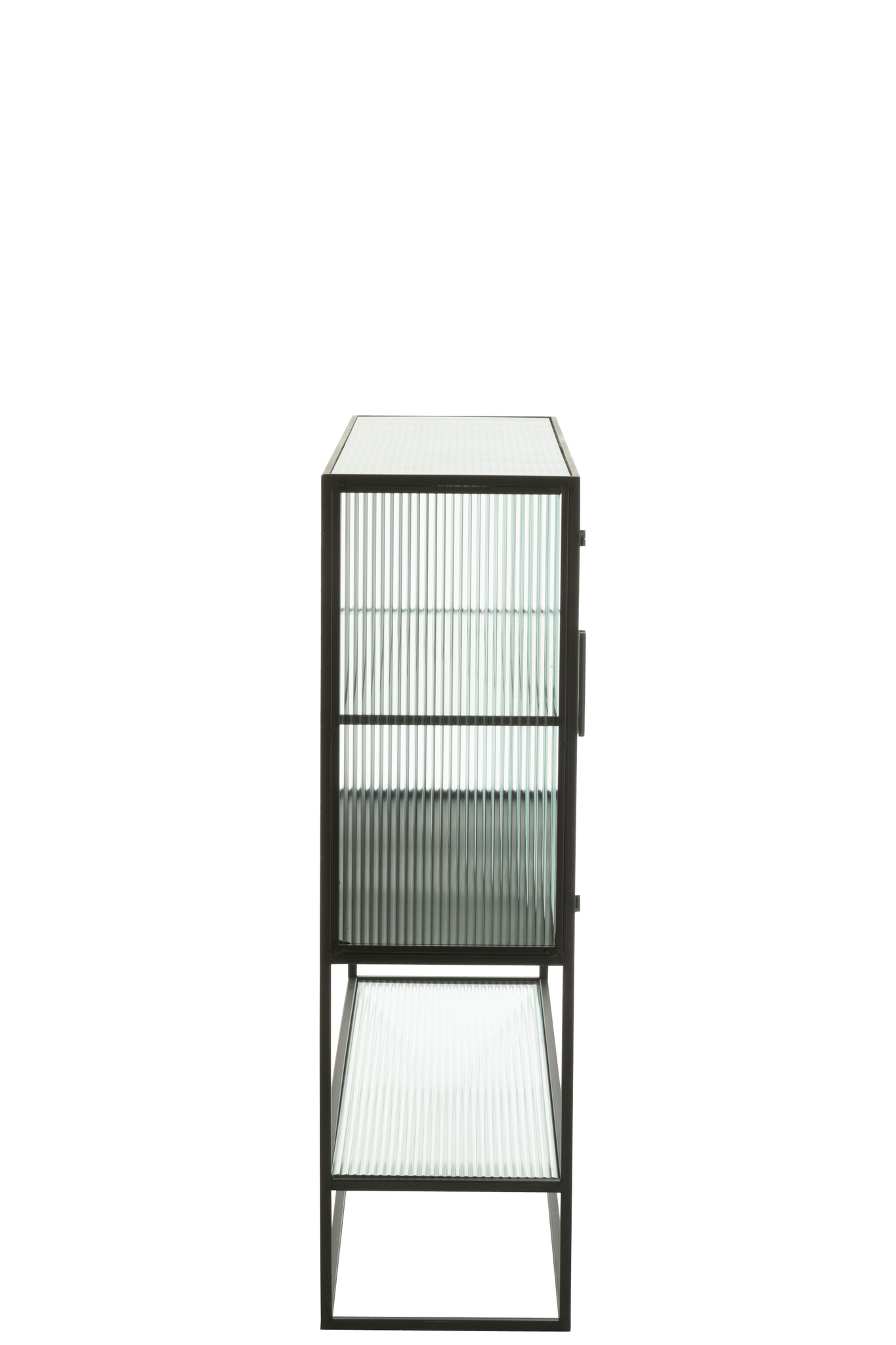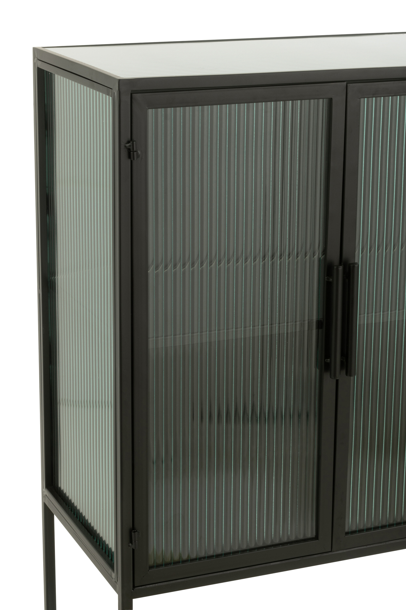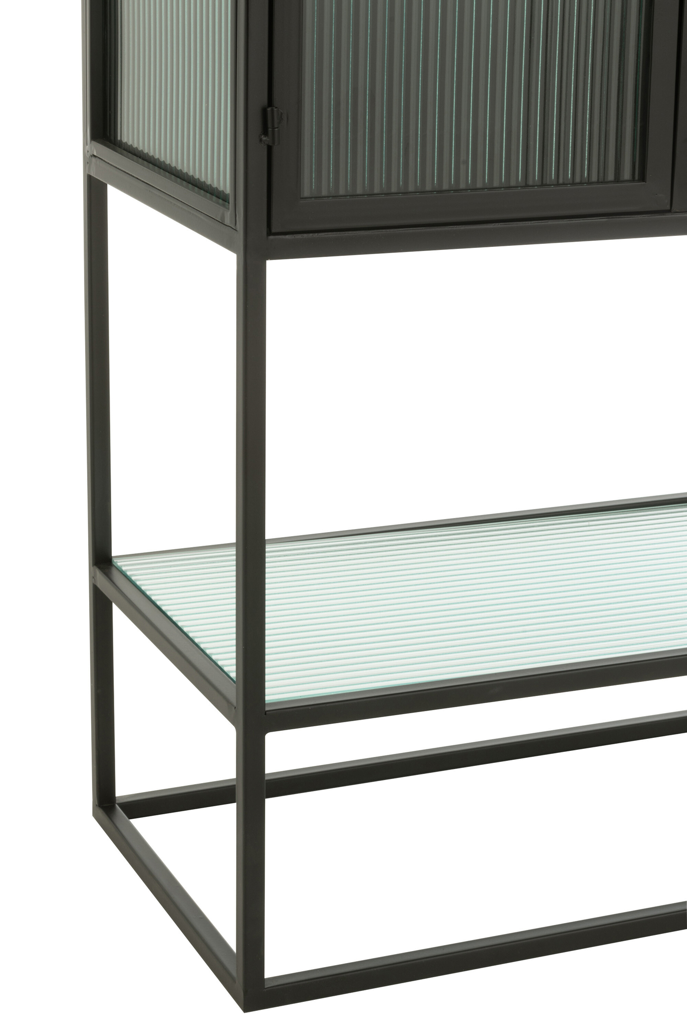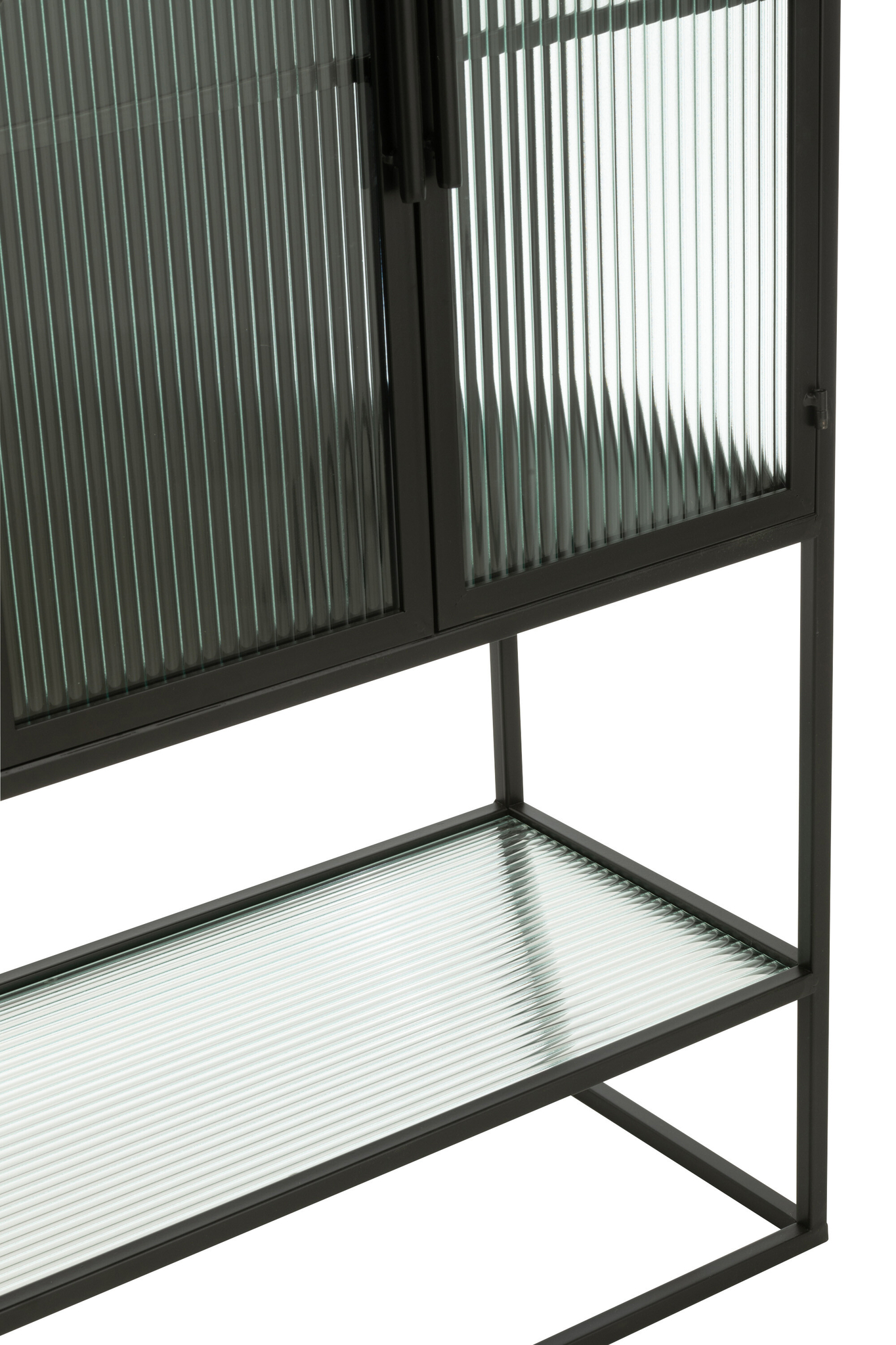 Schwarzer Rahmenschrank aus Eisen und Glas mit vier Türen dekorativ und funktional für Wohnräume.