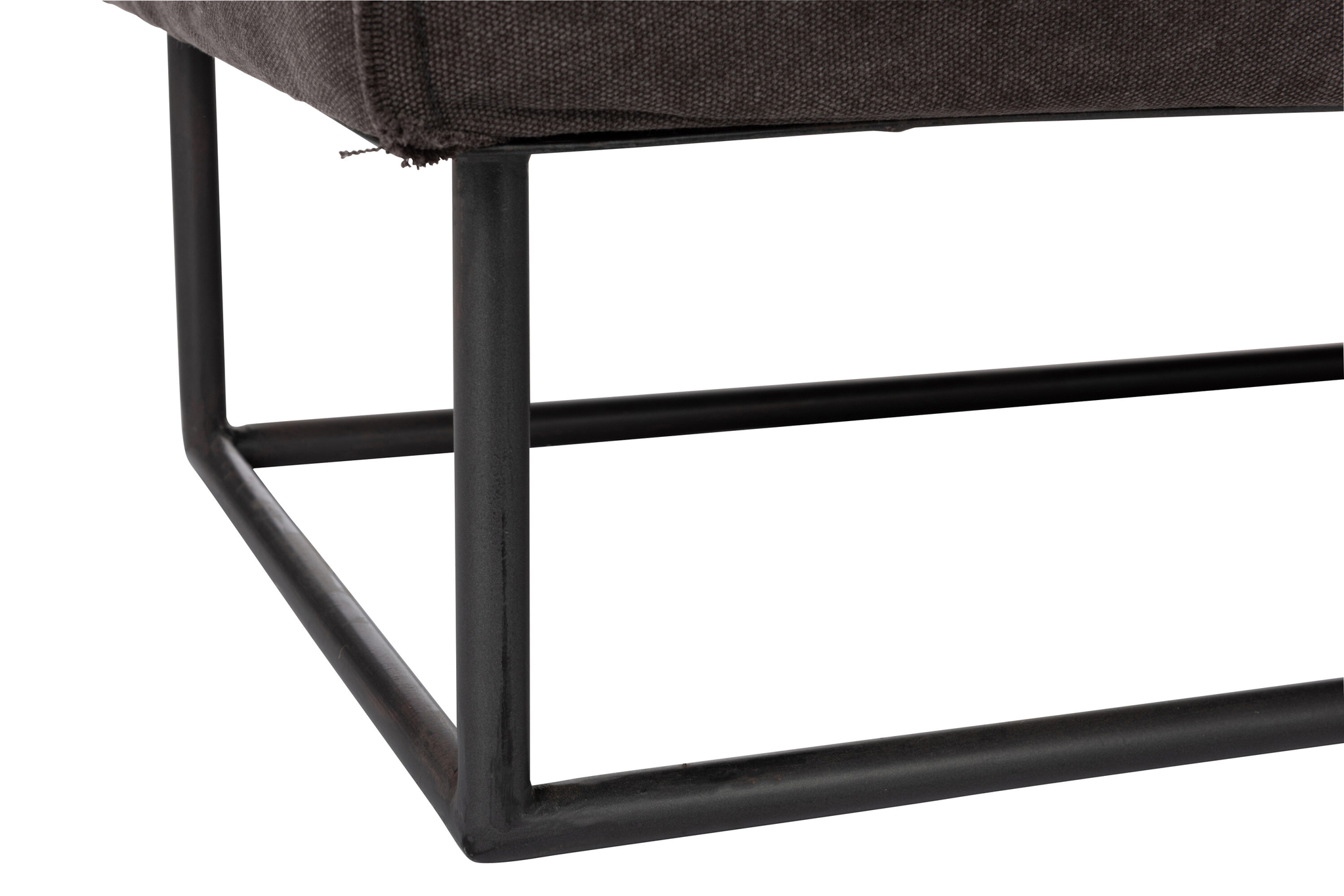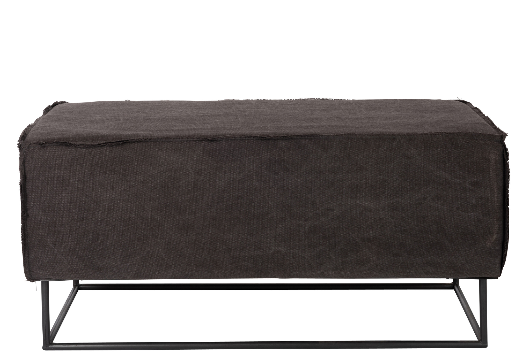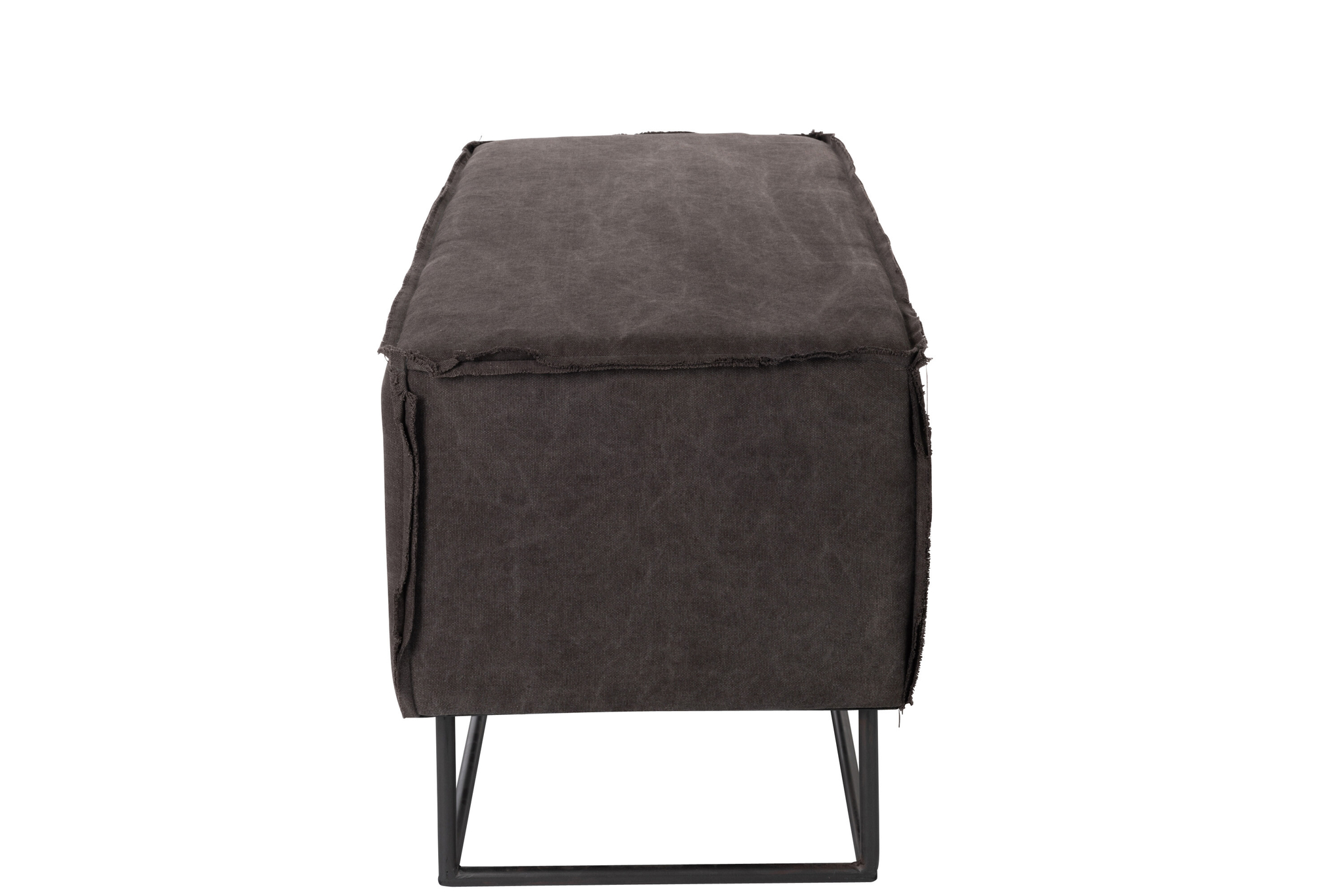 Rechteckige Bank mit schwarzem Textilbezug und Metallgestell