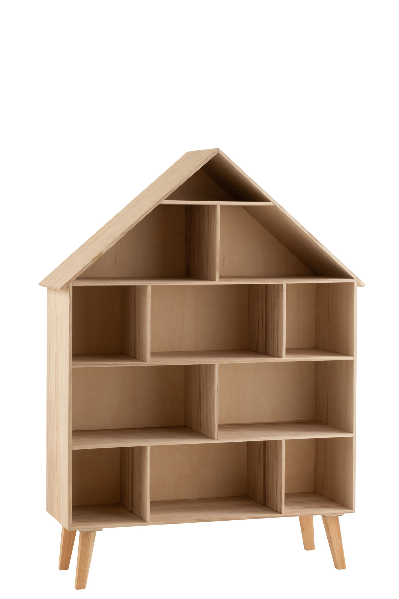 Das Regal „House“ überzeugt durch seine natürliche Optik mit MDF/Schichtholz naturfurniert und die hochwertige Verarbeitung aus 95 % Paulownia und 5 % Kiefernholz. Mit fünf Böden und den Maßen 27,5 cm Breite, 84 cm Länge und 115 cm Höhe bietet es praktischen Stauraum für Bücher, Dekoration oder persönliche Gegenstände. Das leichte Gewicht von 6,32 kg erleichtert die Handhabung, während die stabile Konstruktion langlebige Nutzung ermöglicht. Das Regal steht auf Füßen und wird zerlegt geliefert; eine Montage ist erforderlich.