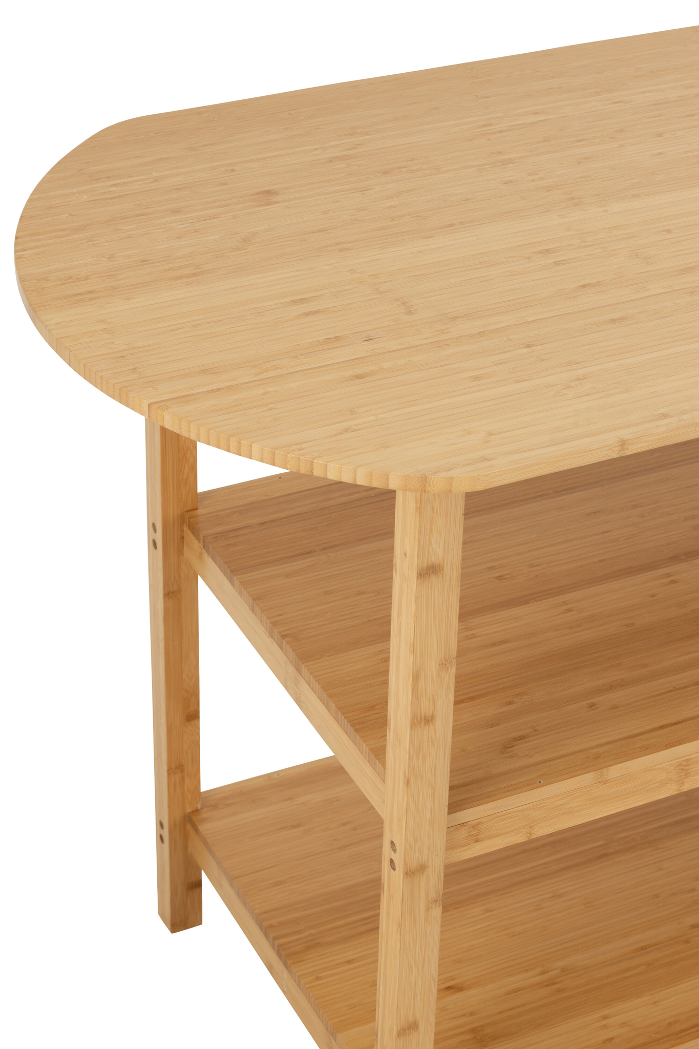 Runder Bartisch aus 100 % Bambus in Natur, stabil, leicht und stilvoll für Wohn- und Gastronomiebereiche.