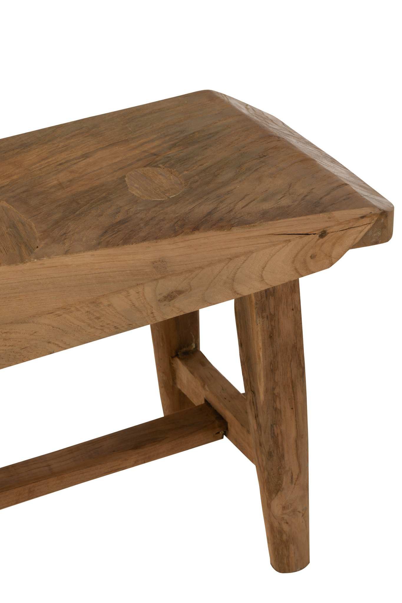 Diese rustikale Bank aus massivem Teakholz überzeugt durch ihre natürliche Ausstrahlung und ihre besonders robuste Verarbeitung. Das naturbelassene Holz bringt die individuelle Maserung schön zur Geltung und macht jedes Stück zu einem Unikat. Dank der stabilen Bauweise eignet sich die Bank sowohl für den Innenbereich als auch für den Einsatz im Freien. Ob im Flur, im Garten oder auf der Terrasse, sie bietet eine praktische Sitzgelegenheit und fügt sich harmonisch in verschiedene Einrichtungsstile ein. Die langlebige Qualität sorgt dafür, dass du lange Freude an diesem zeitlosen Möbelstück hast.