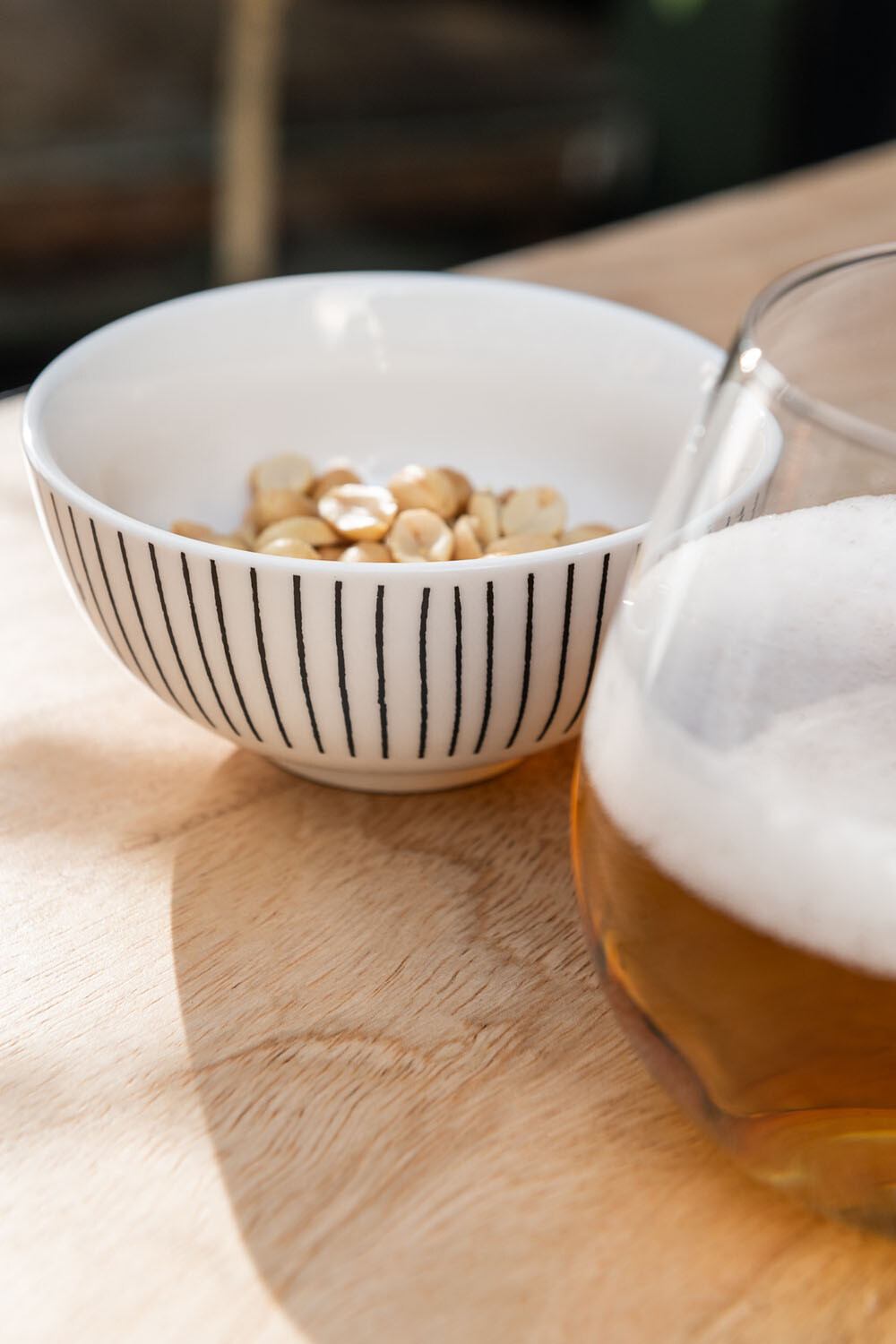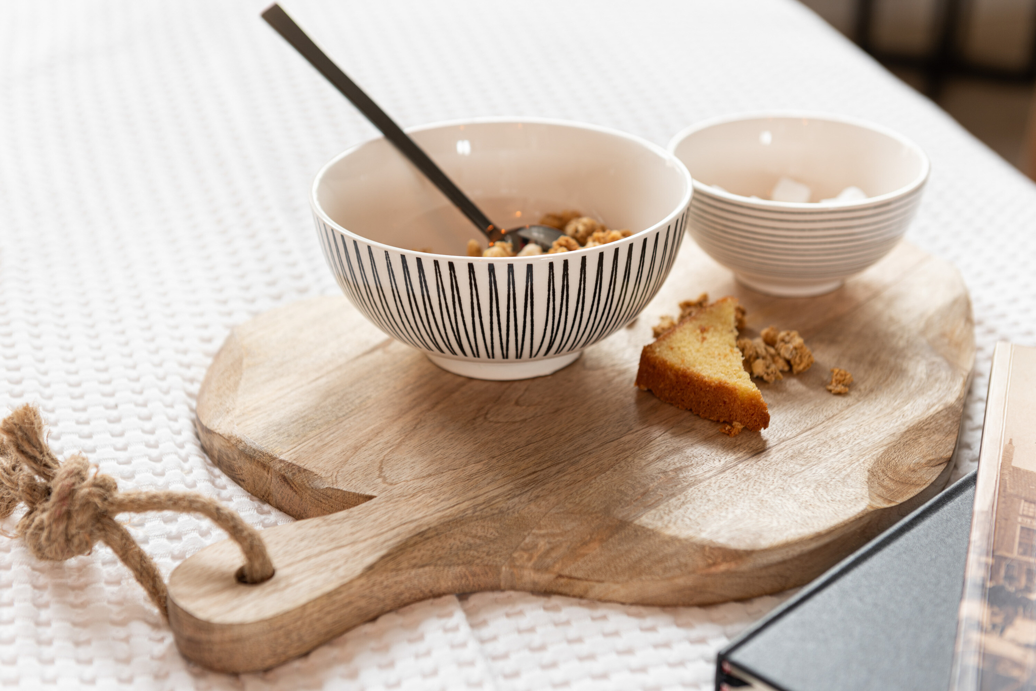 Große Porzellanschale „Stripes“ in Weiß/Schwarz, dekorativ, stabil und ideal für stilvolles Servieren.