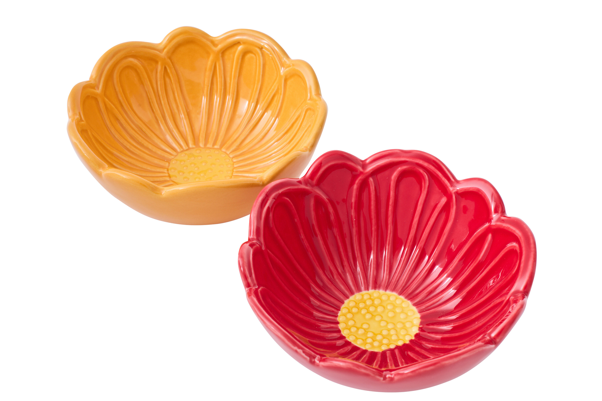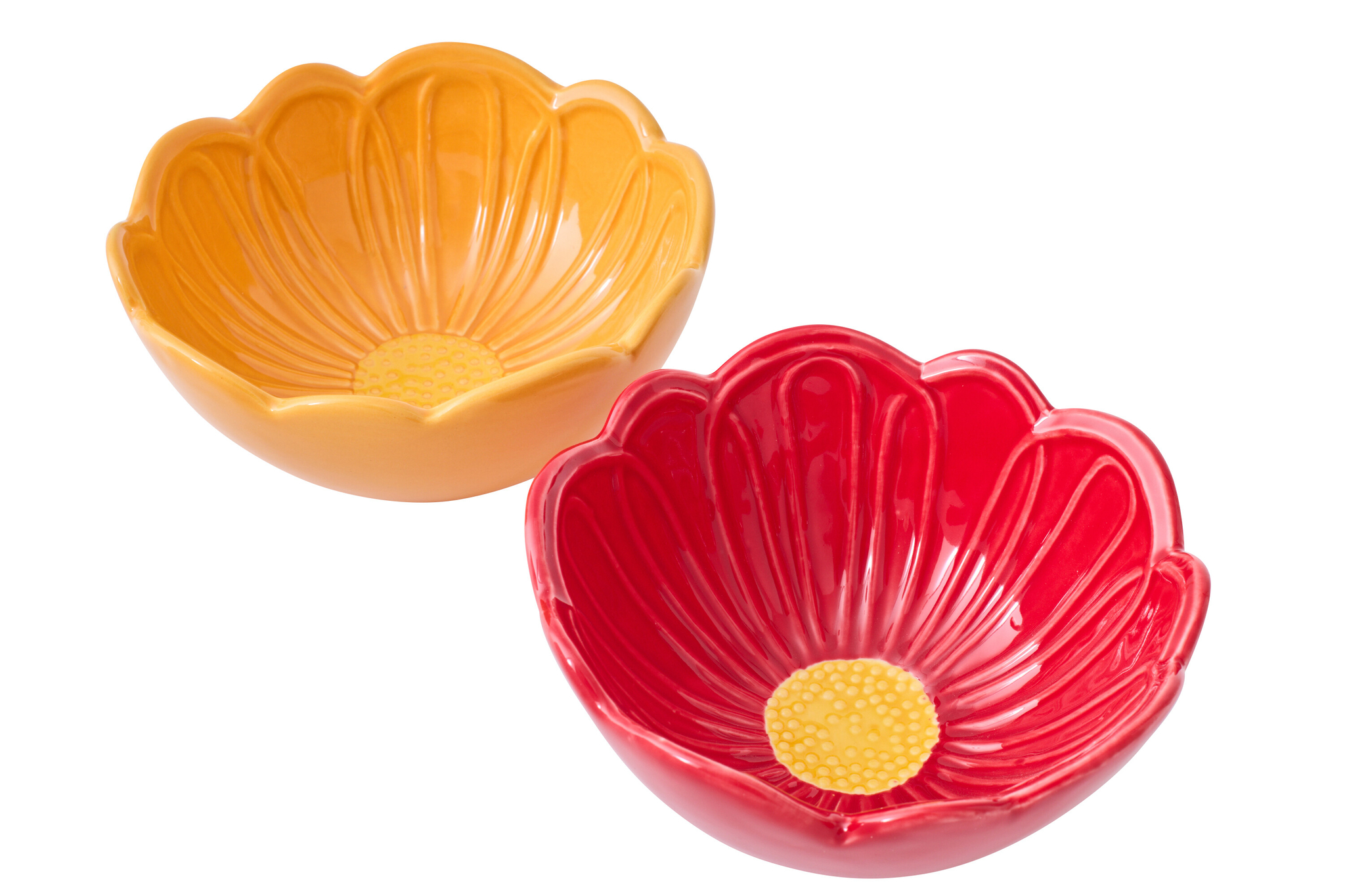 Das Set besteht aus zwei mittelgroßen Schalen „Flower“ aus hochwertigem Porzellan (90 %) mit mehrfarbiger Glasur. Mit einem Durchmesser von 12 cm, einer Höhe von 5,5 cm und einem Gewicht von 0,25 kg sind sie stabil, pflegeleicht und vielseitig einsetzbar. Die Kombination aus Porzellan, Glasur (5 %) und minimalem Wasseranteil (5 %) sorgt für hochwertige Verarbeitung und Langlebigkeit. Ideal für stilvolles Servieren oder dekorative Tischarrangements.