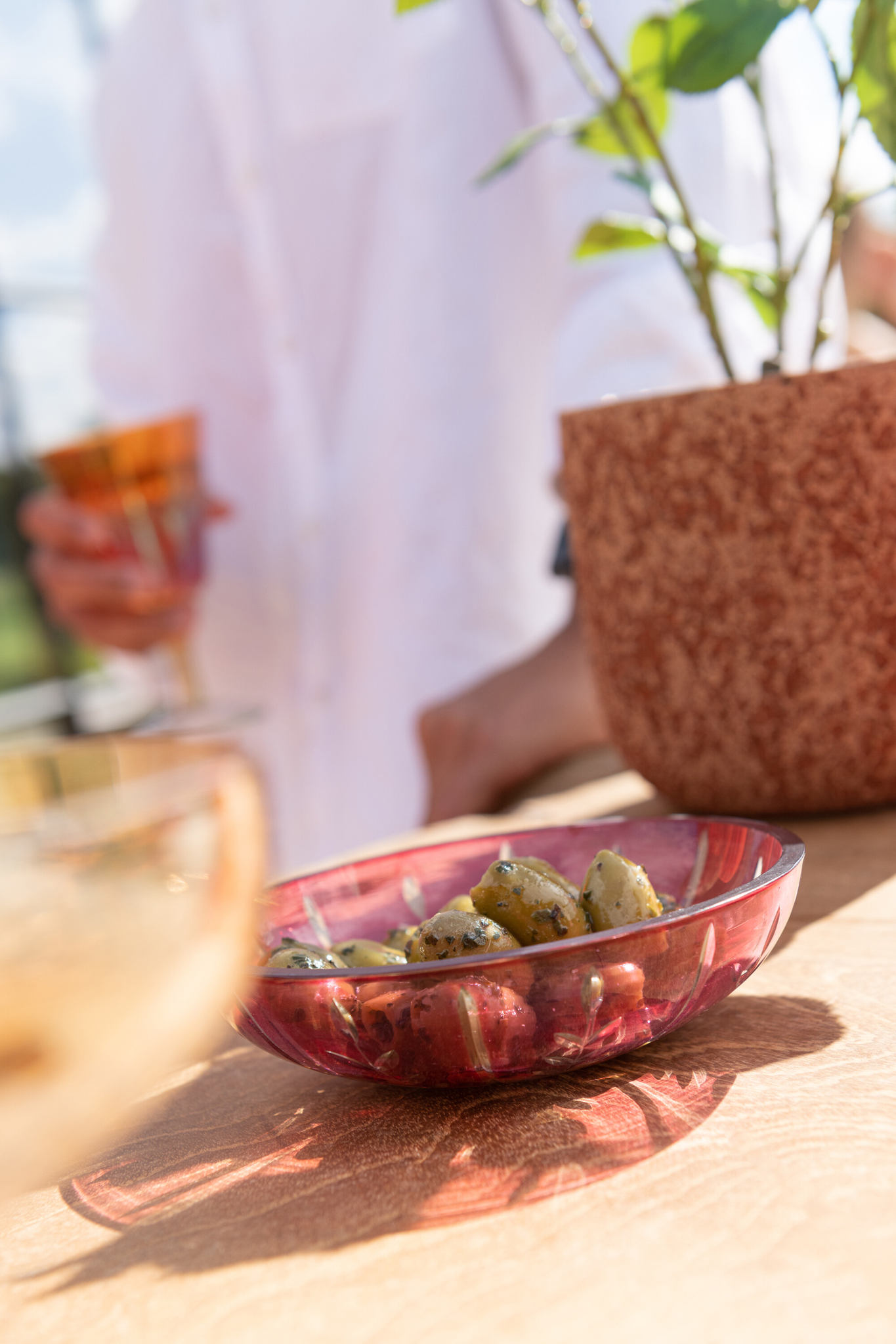 Das Set besteht aus drei farbig gemischten Glasschalen „Leaves“ aus 100 % Glas. Mit einem Durchmesser von 14 cm, einer Höhe von 4,5 cm und einem Gewicht von 0,23 kg sind sie stabil, leicht handhabbar und ideal für den täglichen Gebrauch. Das elegante Design bringt Farbe und Stil auf Tisch, Regal oder Sideboard und eignet sich sowohl für Snacks, Vorspeisen als auch als dekoratives Wohnaccessoire.