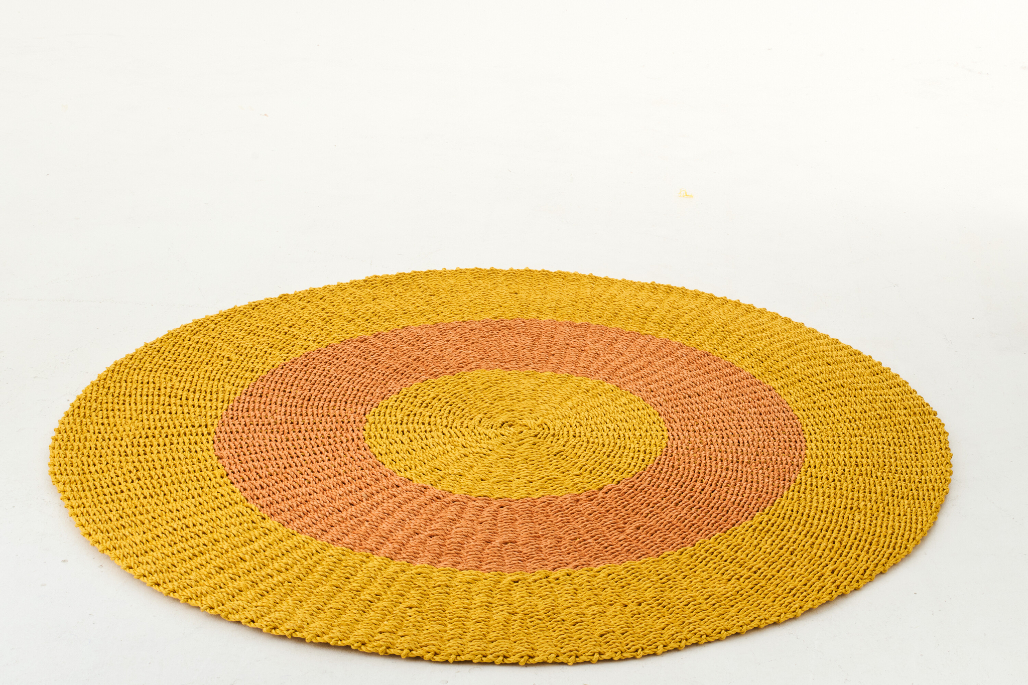 Der Teppich besteht aus 100 % Raffia und überzeugt durch seine natürliche Struktur sowie seine hochwertige Verarbeitung. Mit den Maßen 120 × 120 × 1 Zentimeter und einem Gewicht von 3,3 Kilogramm bietet er eine stabile und zugleich leicht wirkende Grundlage für verschiedene Wohnbereiche. Das gestreifte Design in Grün und Warmgelb verleiht dem Teppich eine frische und moderne Ausstrahlung. Er eignet sich ideal als dekoratives Element und setzt in unterschiedlichen Einrichtungsstilen stilvolle, farbige Akzente.