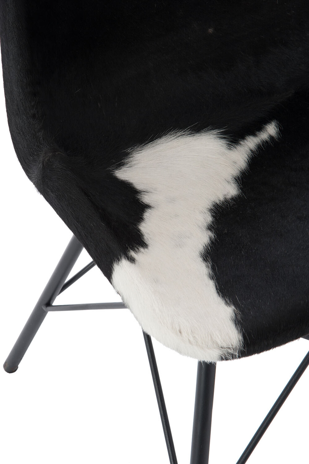 Dieser Stuhl kombiniert ein schlankes Metallgestell mit einem hochwertigen Ziegenlederbezug und überzeugt durch sein elegantes, kontrastreiches Design in Schwarz und Weiß. Die stabile Konstruktion aus Eisen sorgt für Langlebigkeit und zuverlässigen Halt, während das Leder eine angenehme Haptik und edle Optik bietet. Durch seine kompakte Form eignet sich der Stuhl ideal für moderne Wohn und Objektbereiche und setzt stilvolle Akzente in anspruchsvollen Innenräumen.