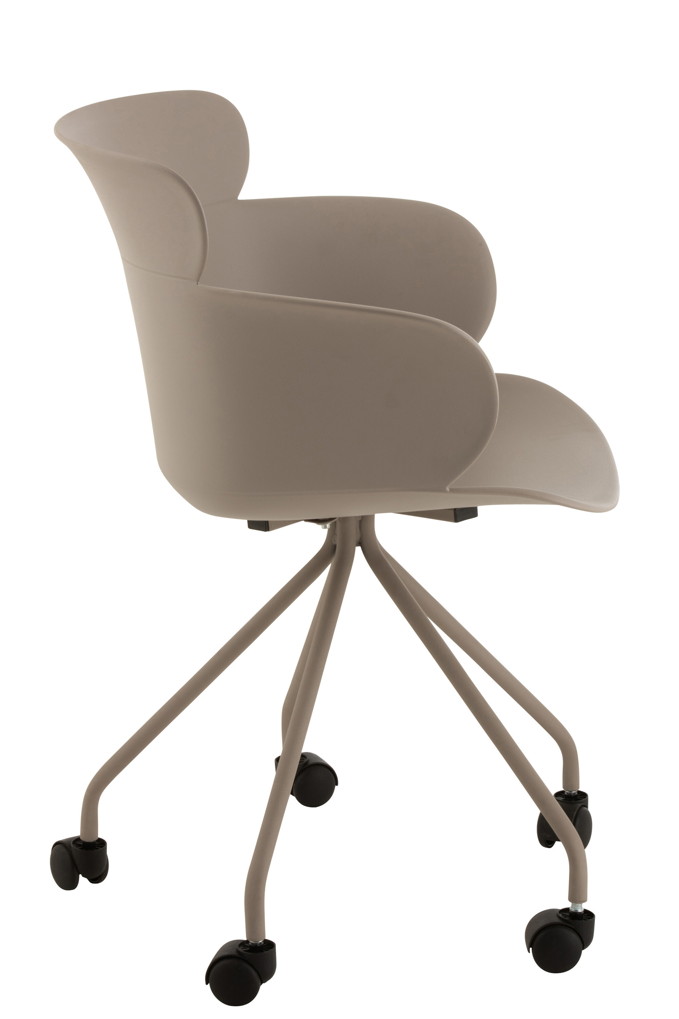 Dieser Stuhl mit Rollen kombiniert ein stabiles Stahlgestell mit einer ergonomisch geformten Sitzfläche aus Polypropylen und überzeugt durch sein zeitgemäßes, funktionales Design. Die graue Farbgebung wirkt dezent und modern zugleich, wodurch sich der Stuhl vielseitig in Arbeits oder Wohnbereiche integrieren lässt. Durch die integrierten Rollen bietet er hohe Flexibilität und eignet sich ideal für dynamische Einsatzbereiche. Die Konstruktion ist leicht und dennoch stabil und sorgt für einen komfortablen Sitz im Alltag. Eine Montage ist erforderlich.