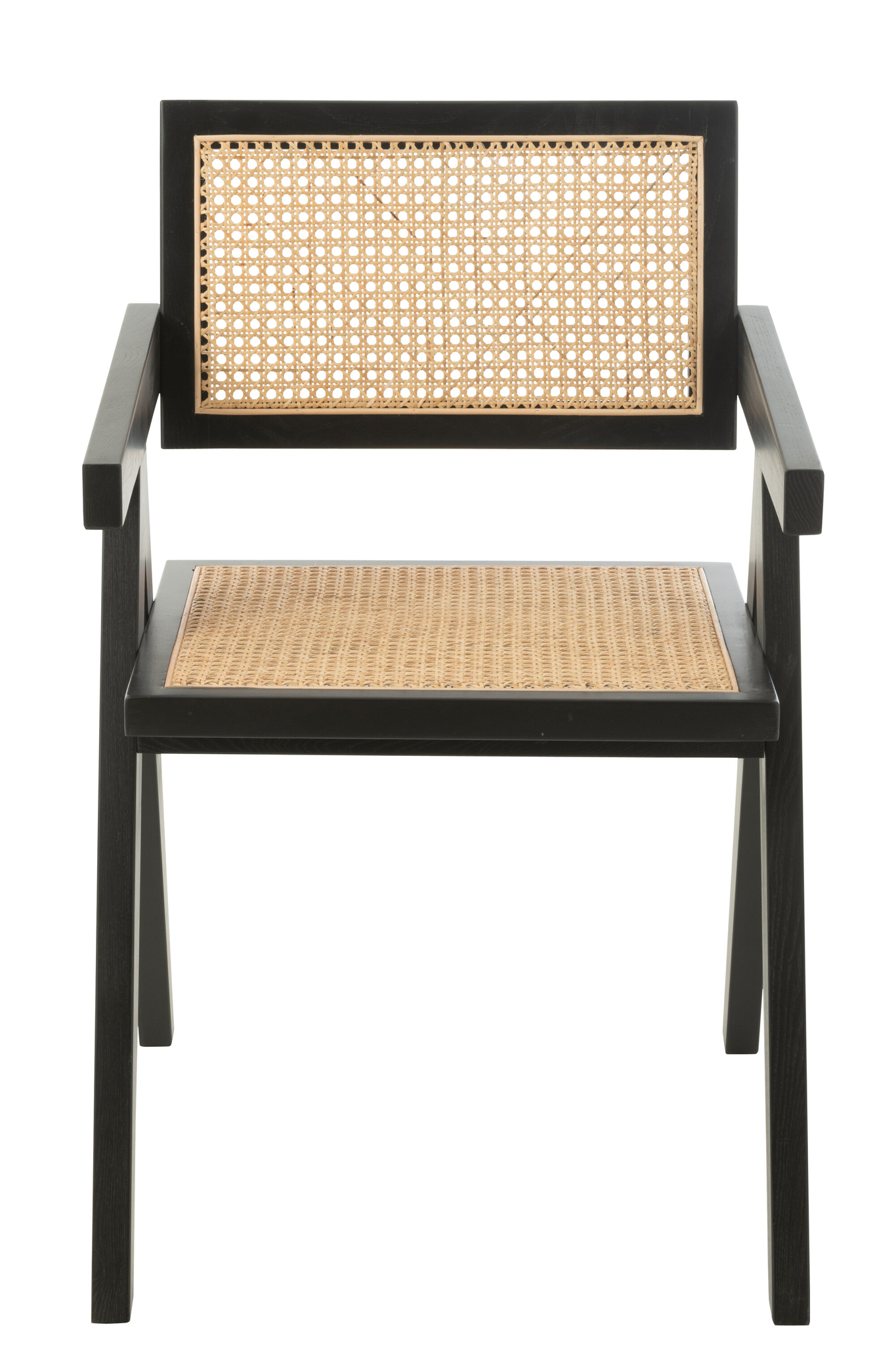 Moderner Stuhl aus Eschenholz und Rattan in Schwarz für stilvolle und robuste Einrichtung.