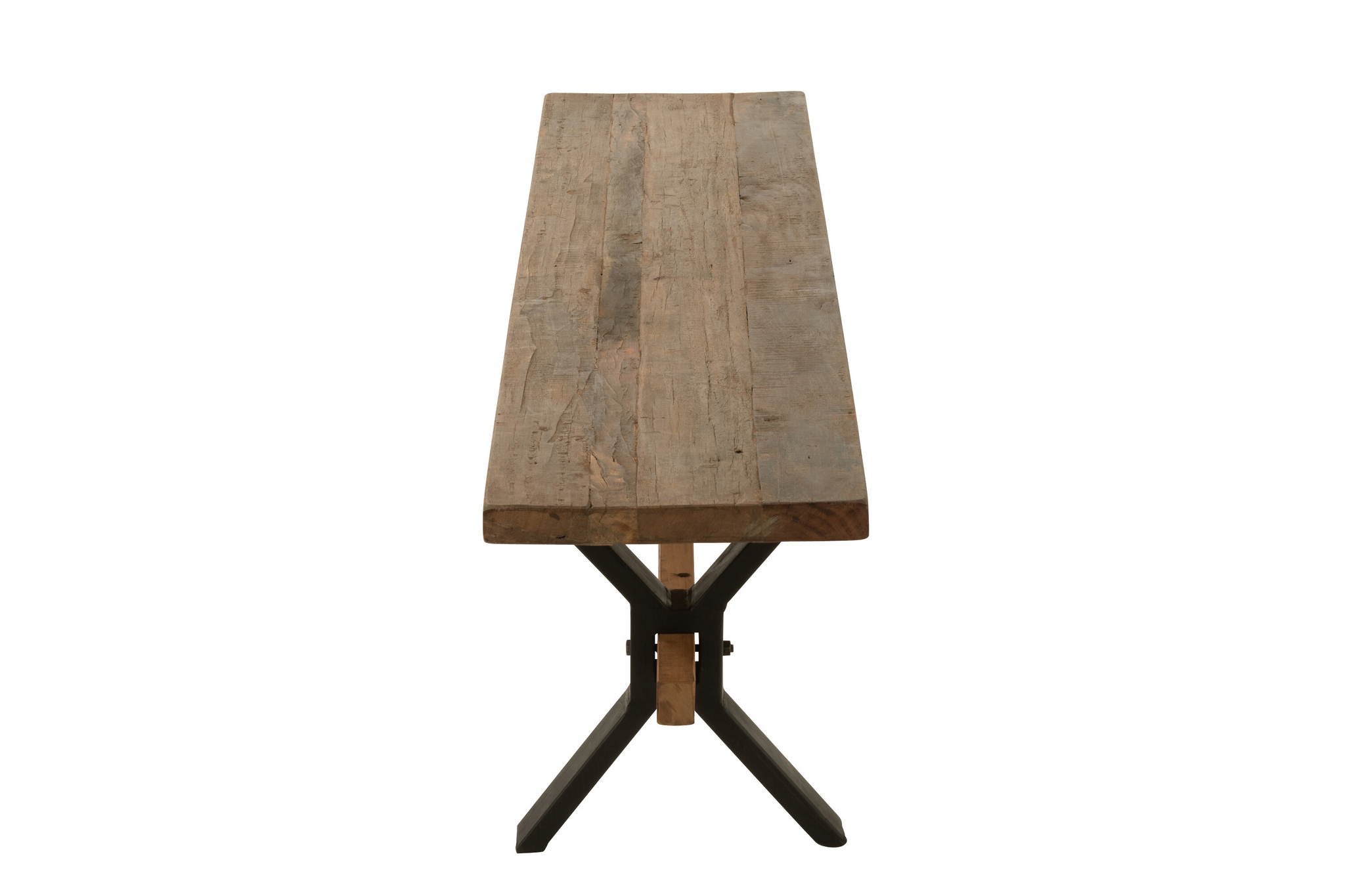 Robuste Vintage-Bank aus recyceltem Holz und Metall, ideal für Innen- und Außenbereiche.