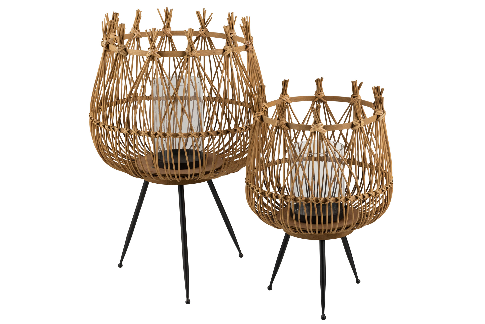 Dieses große, runde Windlicht auf Fuß überzeugt durch sein natürliches Design und die harmonische Kombination aus Bambus, Rattan, Eisen, Sperrholz und Glas. Mit den Maßen 41,5 × 63,5 × 41,5 cm sowie einem Gewicht von 1 kg wirkt es leicht und zugleich präsent im Raum. Die offene, runde Form in Kombination mit dem Glasanteil sorgt für ein stimmungsvolles Lichtspiel, während die Naturmaterialien eine warme, organische Ausstrahlung verleihen. Ideal geeignet als dekoratives Highlight für Wohn- und Lounge-Bereiche.