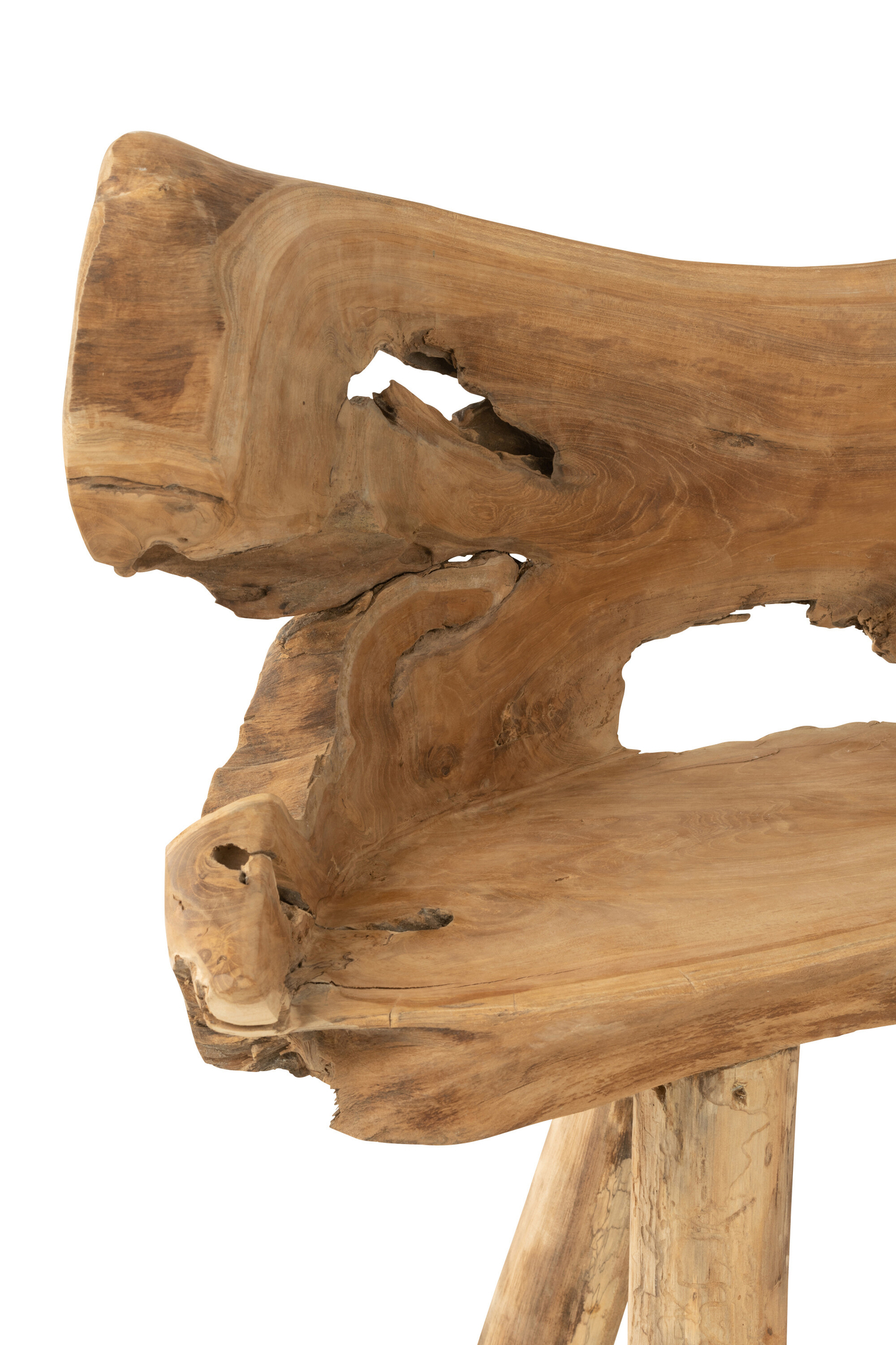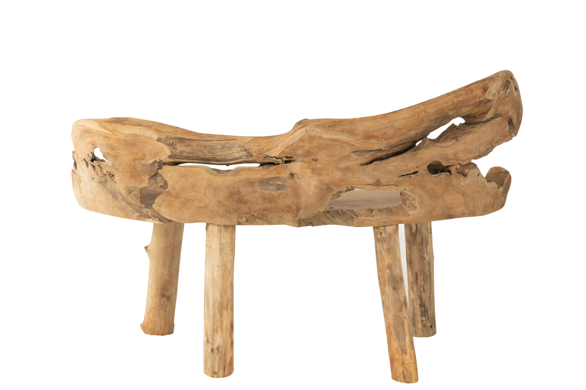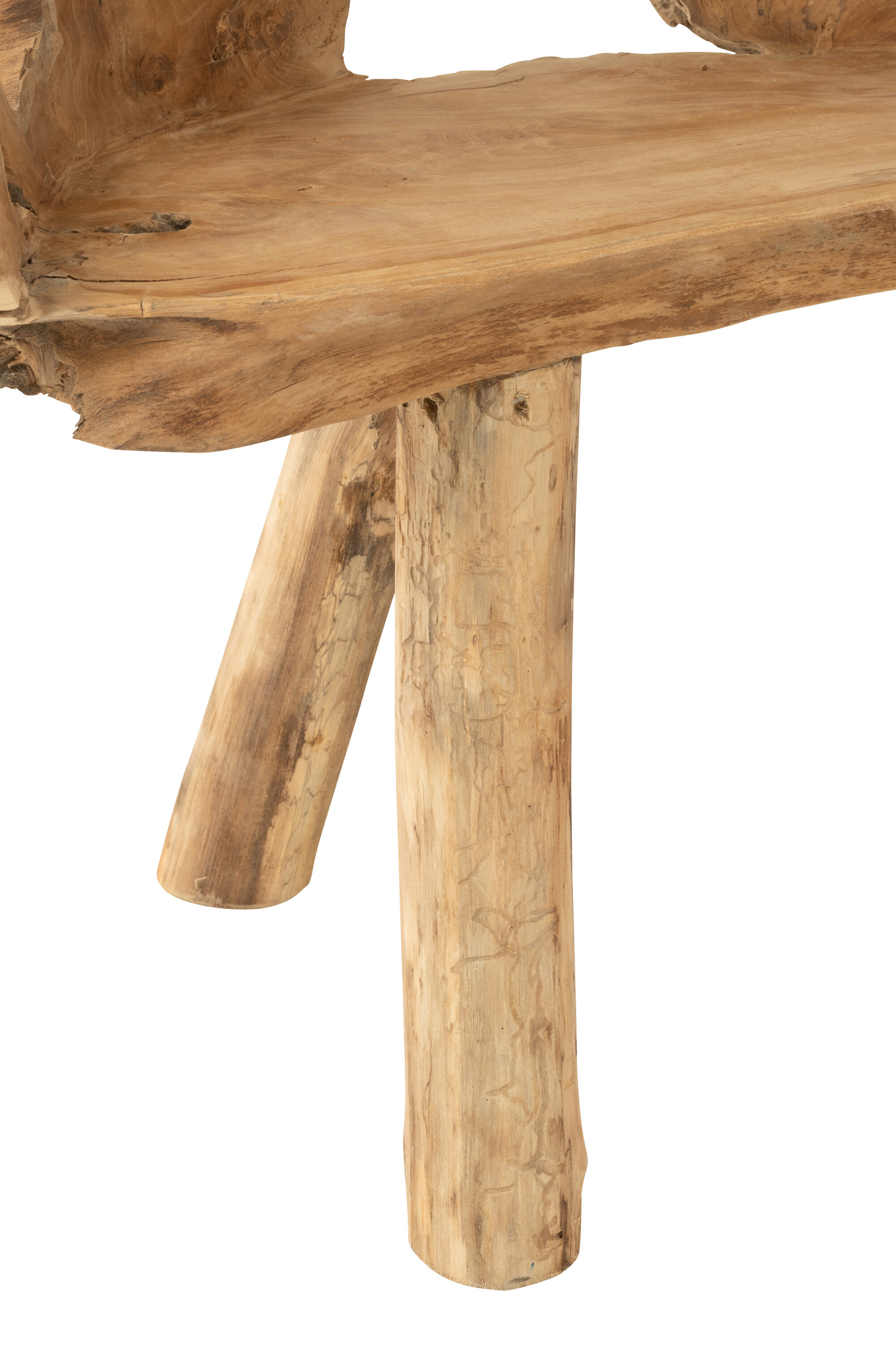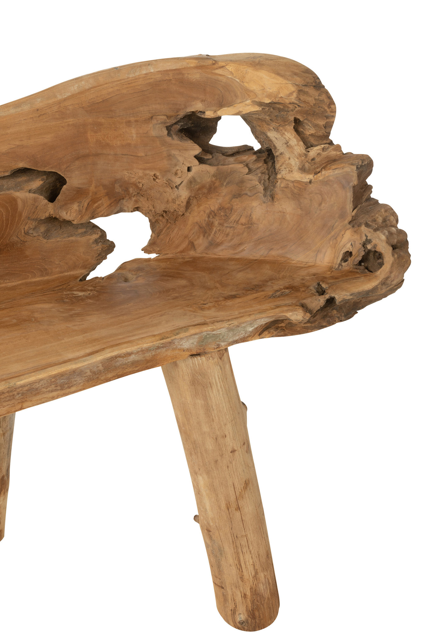 Robuste Bank aus naturbelassenem Teakholz mit zeitlosem Design für Innen- und Außenbereiche.